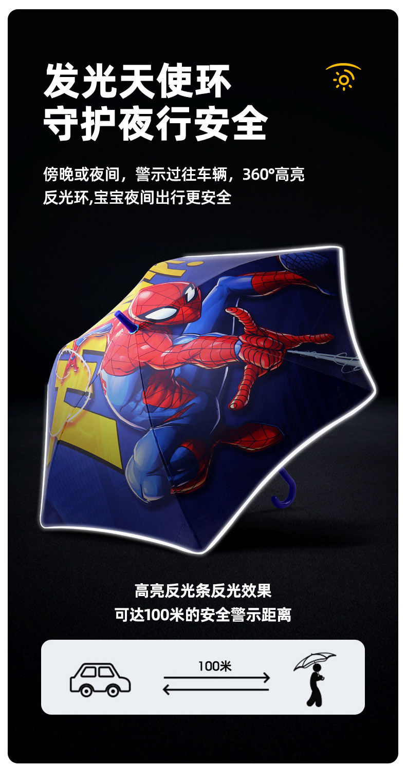 • 중형 스파이더맨 - 둥근 모서리가 있는 충격 방지 반사 스트립 어린이 우산