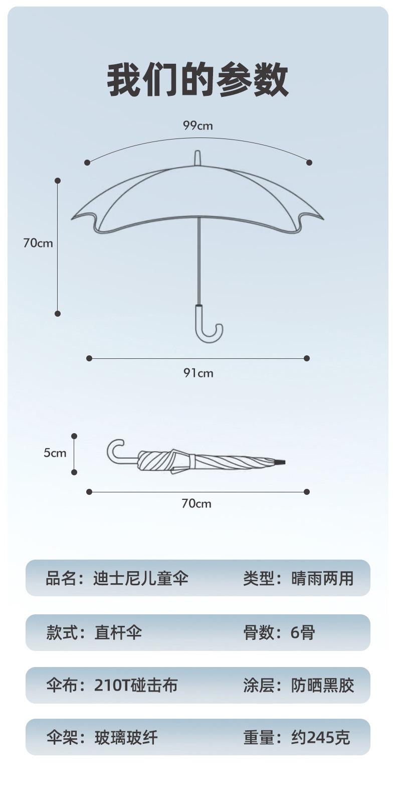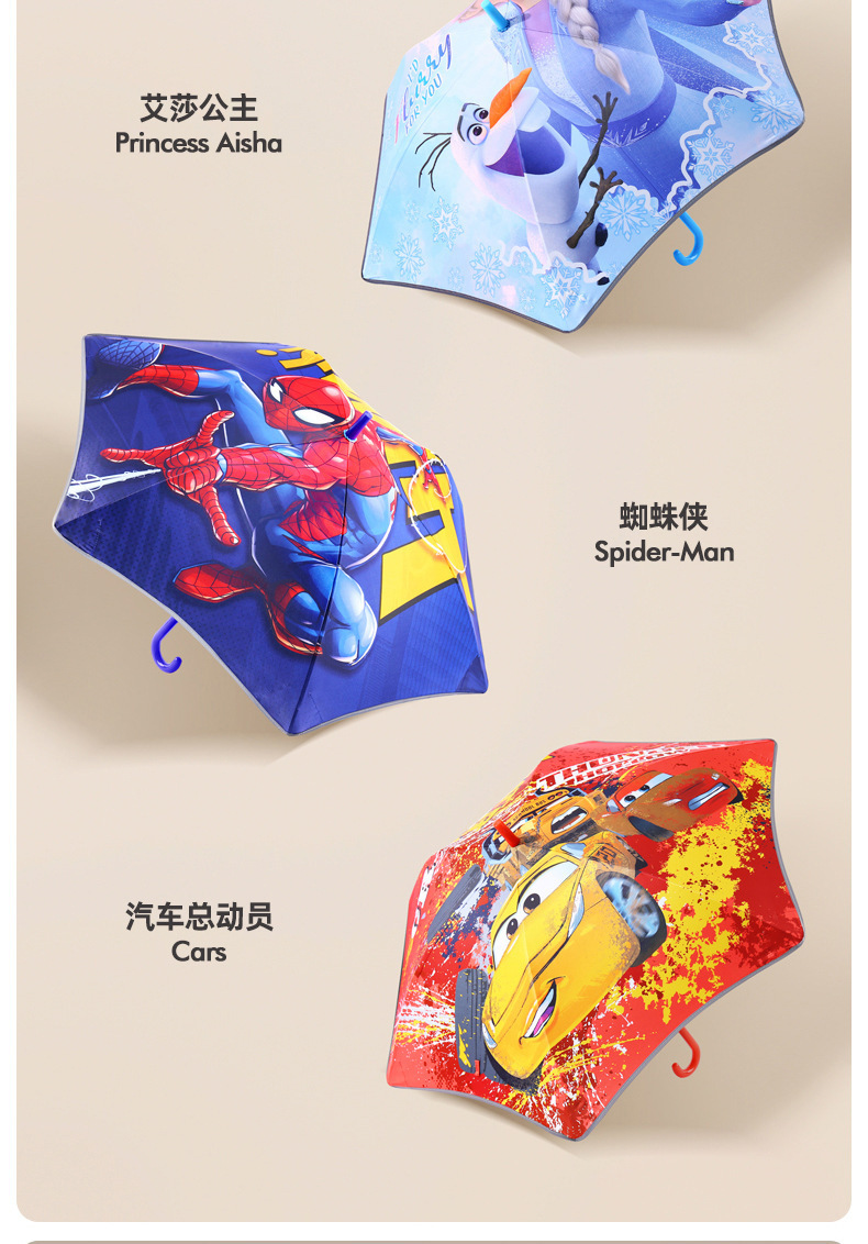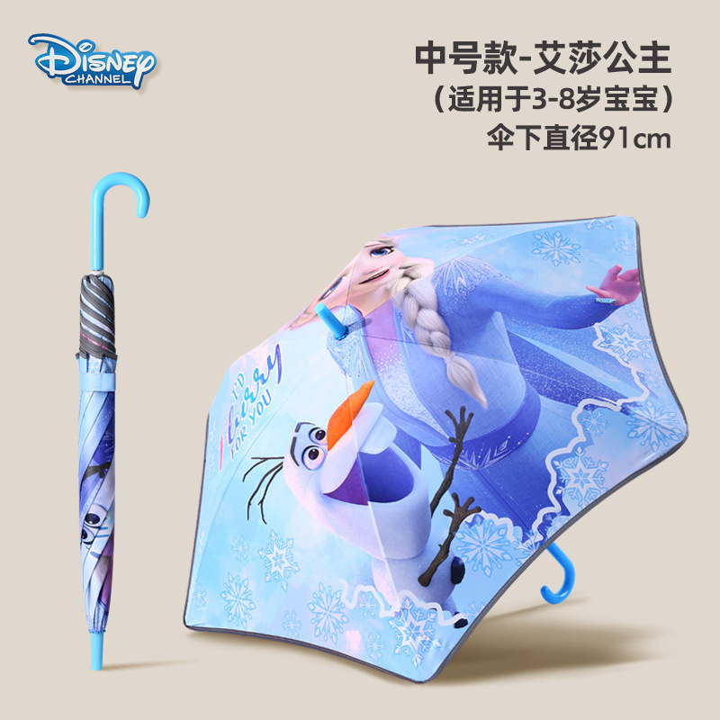 • 중형 엘사 공주 - 둥근 모서리 방지 충격 방지 반사 스트립 어린이 우산