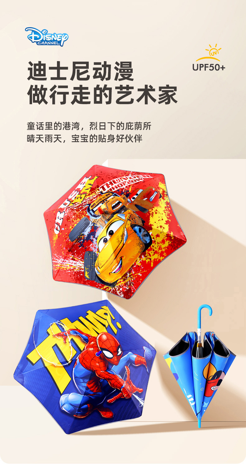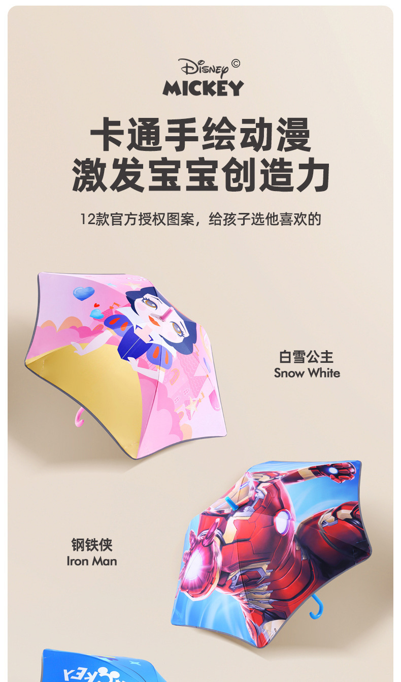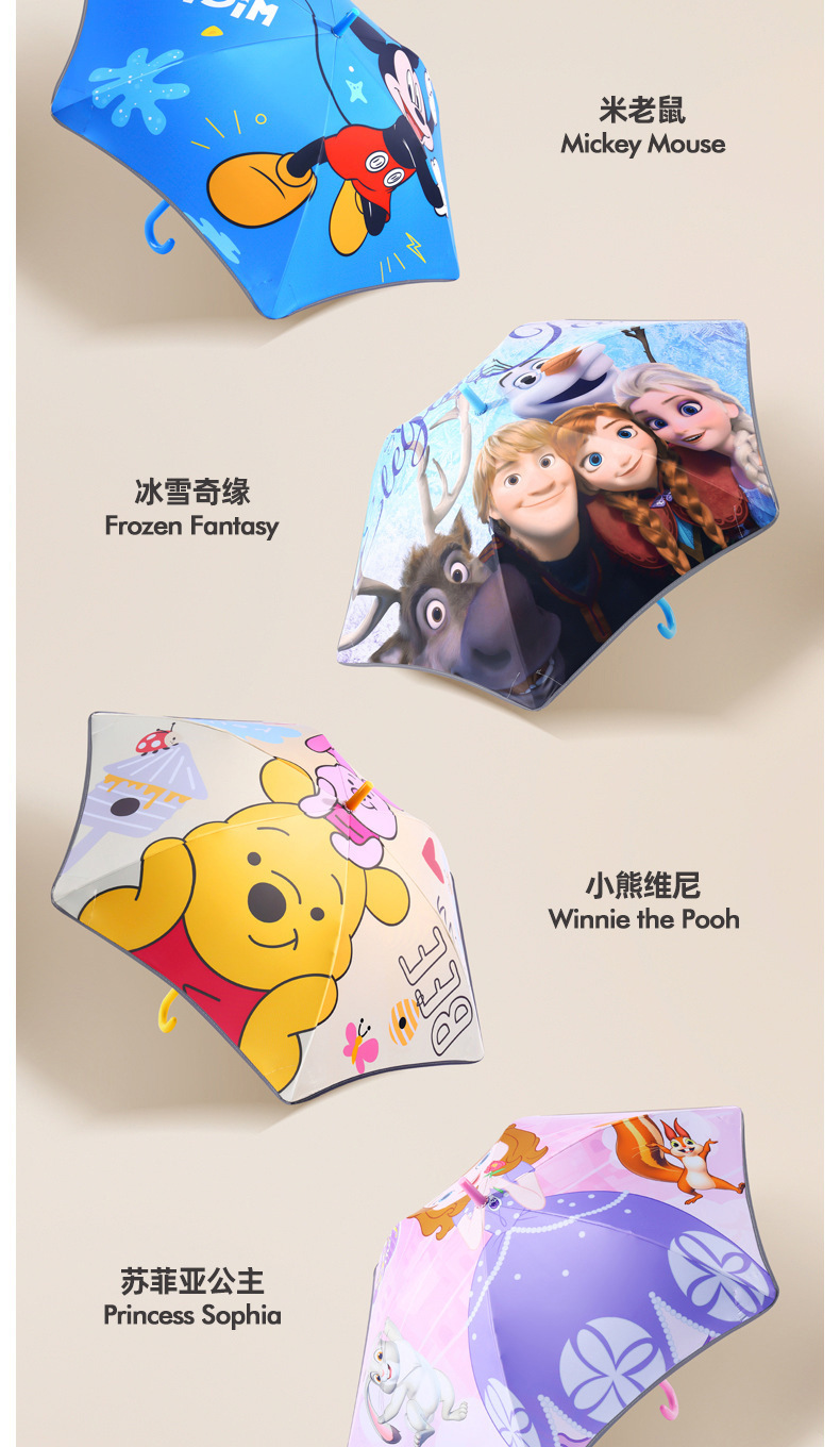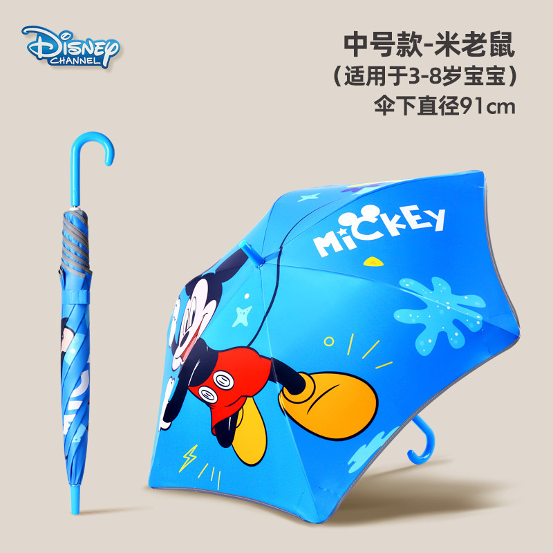 • 중간 크기의 미키 마우스 둥근 모서리 방지 충격 방지 반사 스트립 어린이 우산