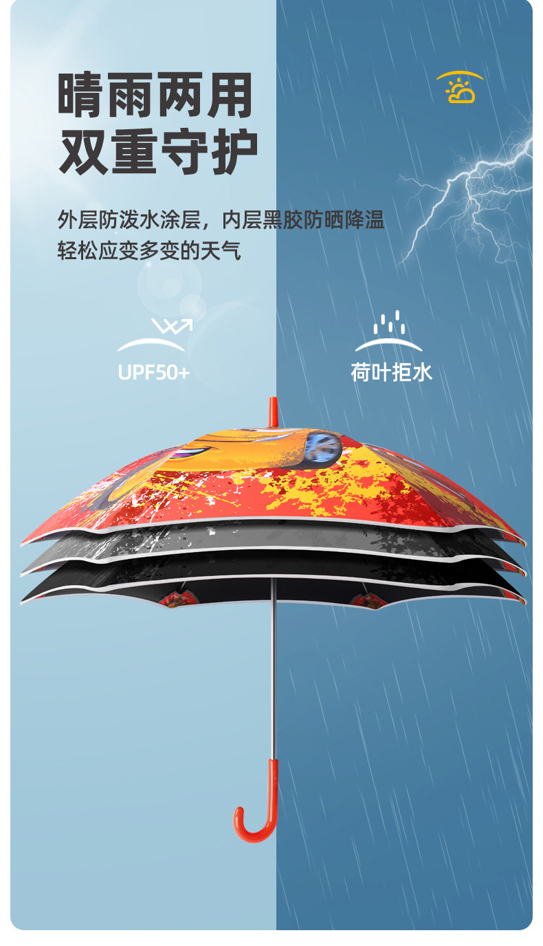 어린이 둥근 우산 유치원 초등학생 아기 맑은 우산 만화 패턴 검은 접착제 선스크린 반사 스트립