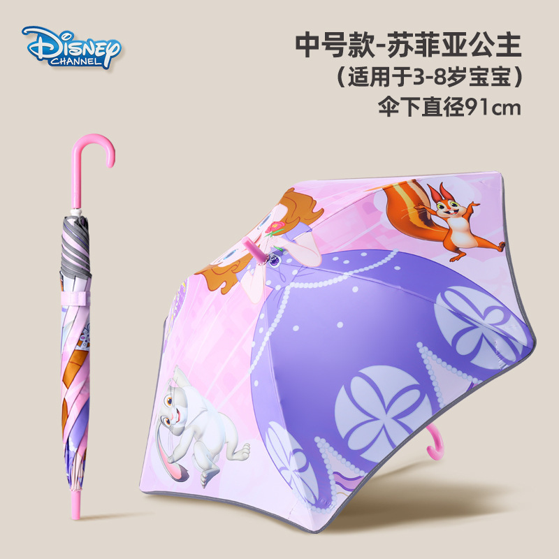 • 중형 소피아 공주 - 둥근 모서리 방지 충격 방지 반사 스트립 어린이 우산