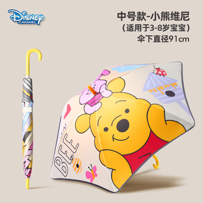 • 중형 곰돌이 푸 - 둥근 모서리 방지 충격 방지 반사 스트립 어린이 우산
