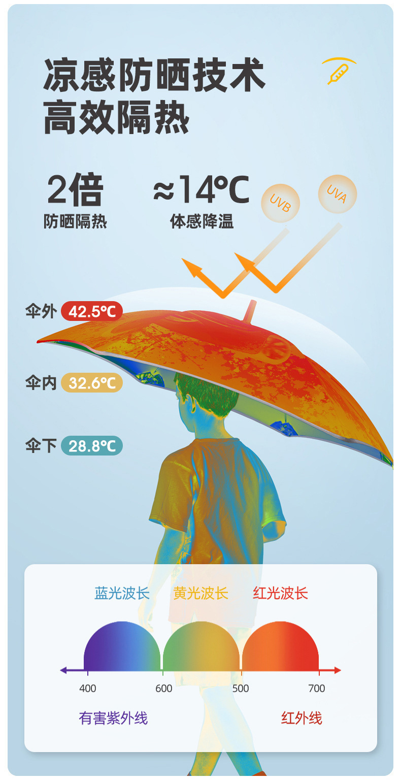 • 중형 아이언맨 - 둥근 모서리 방지 충격 방지 반사 스트립 어린이 우산