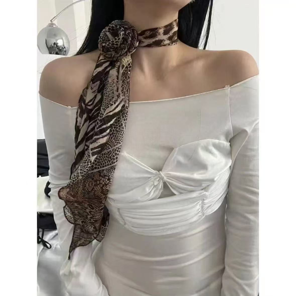 아메리칸 스타일 밀레니엄 레오파드 무늬 스카프 여성 2025 년 여름 뉴 Y2K 레트로 스카프 달콤한 쿨 스파이스 소녀 타이 헤어 밴드