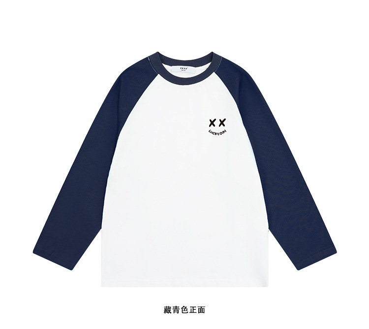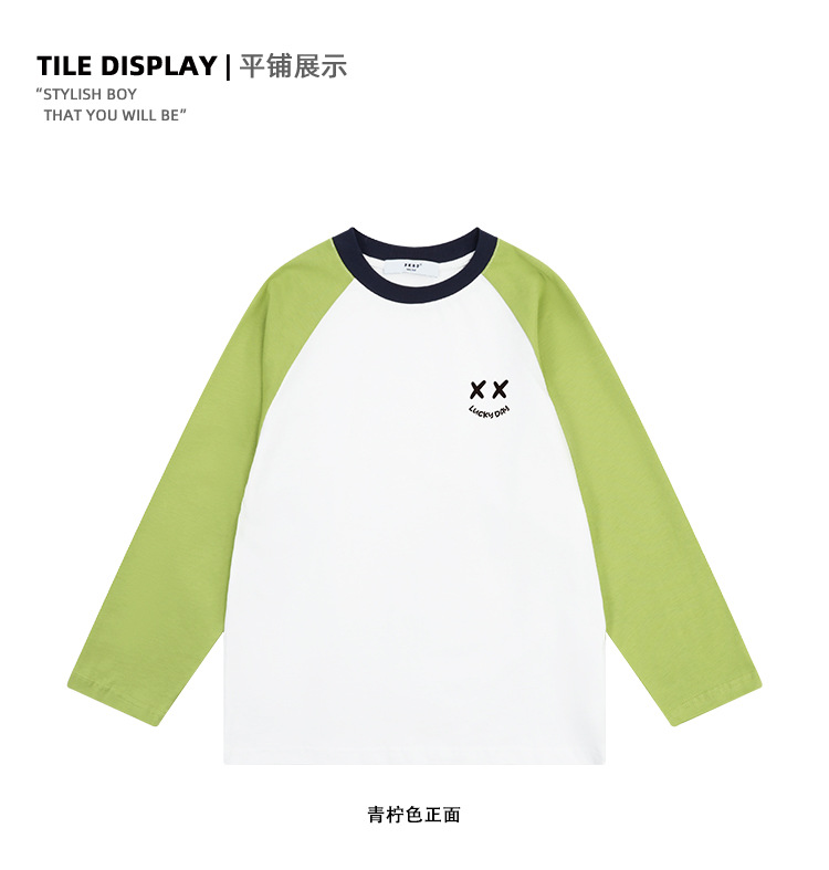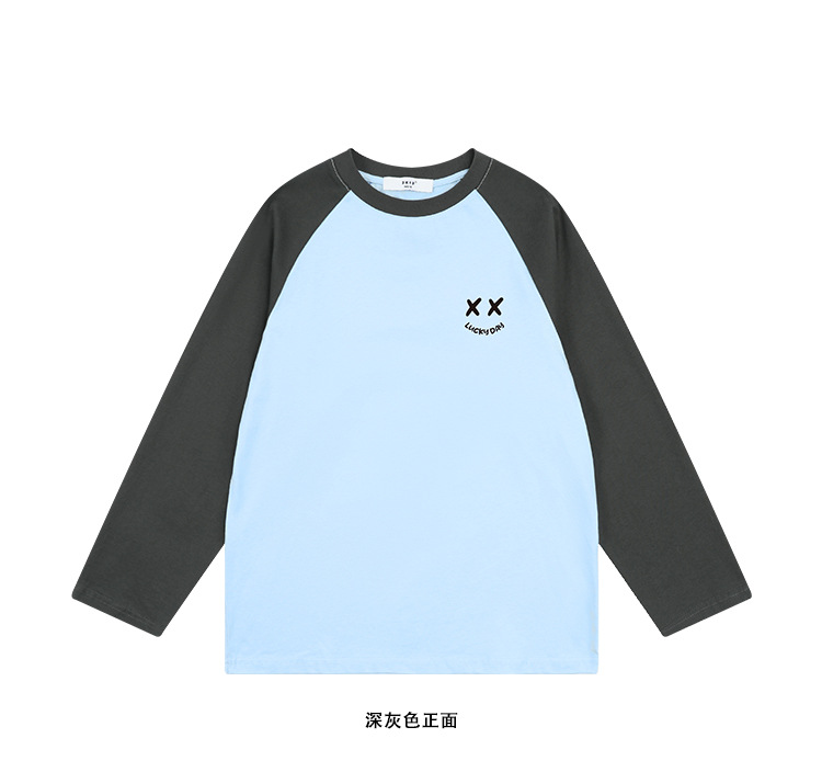 DK 아동복 25 가을 스타일 소녀와 소년 웃는 얼굴 라글란 슬리브 티셔츠 아동용 중대형 아동 캐주얼 긴팔 셔츠
