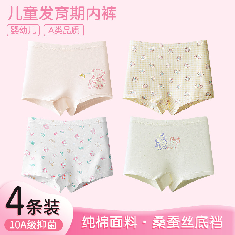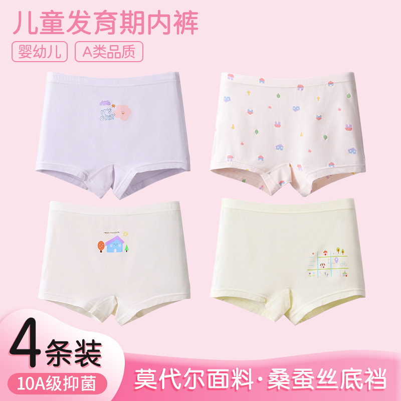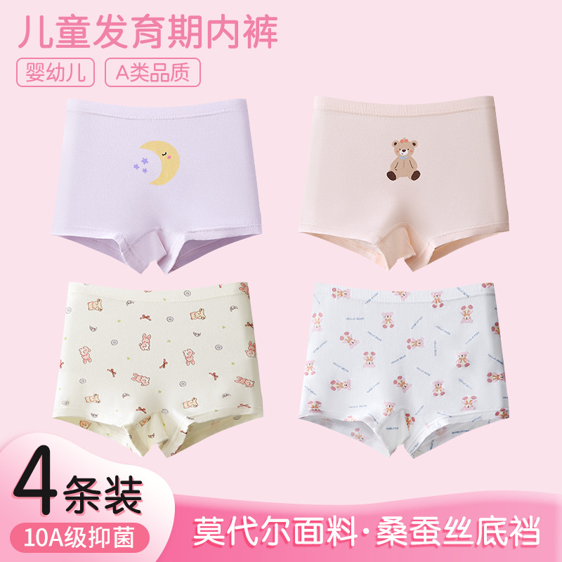 [신상품] 여아용 항균 모달 팬티, 여아용 사각 팬티, 엉덩이에 꼬임 없는 편안하고 부드러우며 통기성 좋은 제품스토어 가기