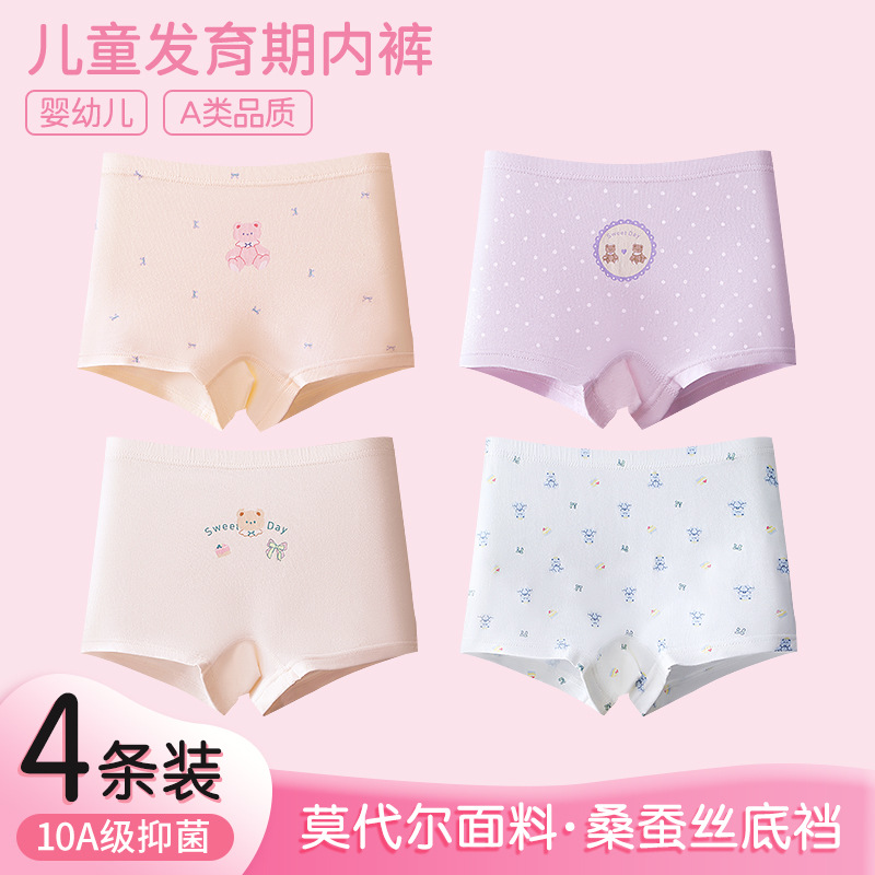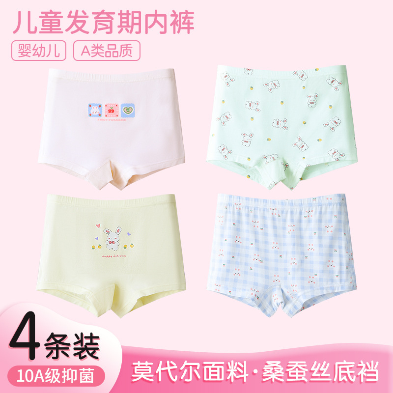 [신상품] 여아용 항균 모달 팬티, 여아용 사각 팬티, 엉덩이에 꼬임 없는 편안하고 부드러우며 통기성 좋은 제품