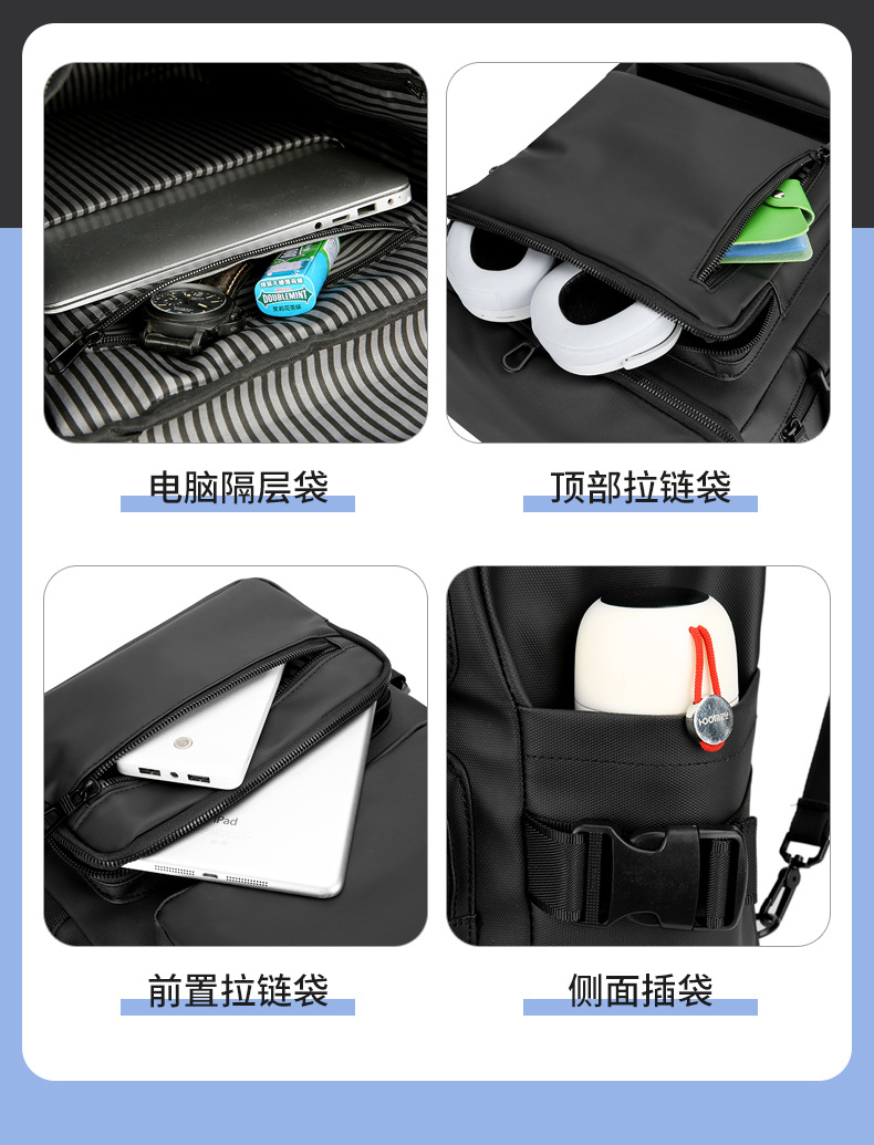 크로스-국경 다기능 배낭 배낭 남성 노트북 필름 컴퓨터 가방 블랙 휴대용 대학 스타일 학생 Schoolbag