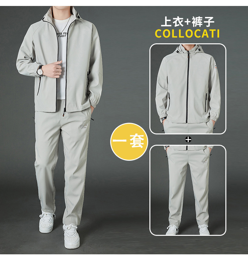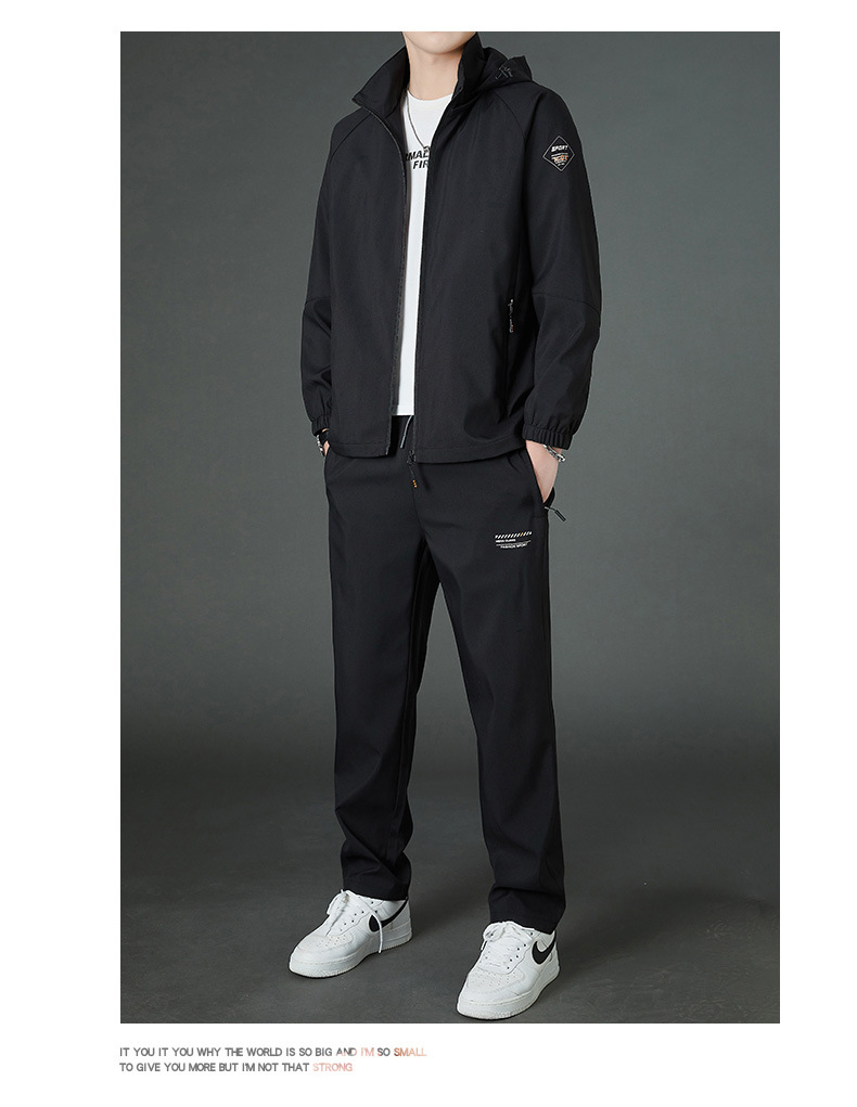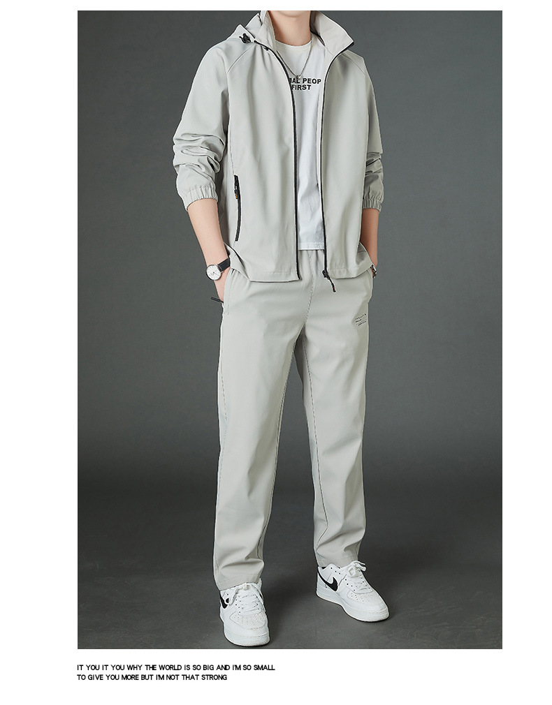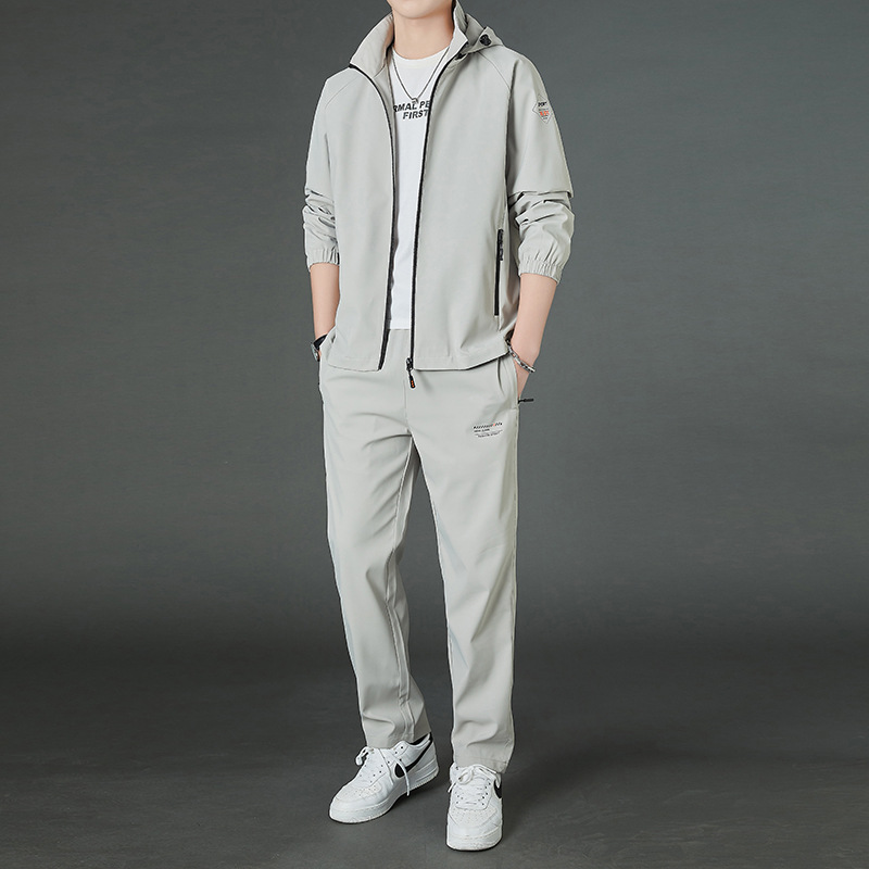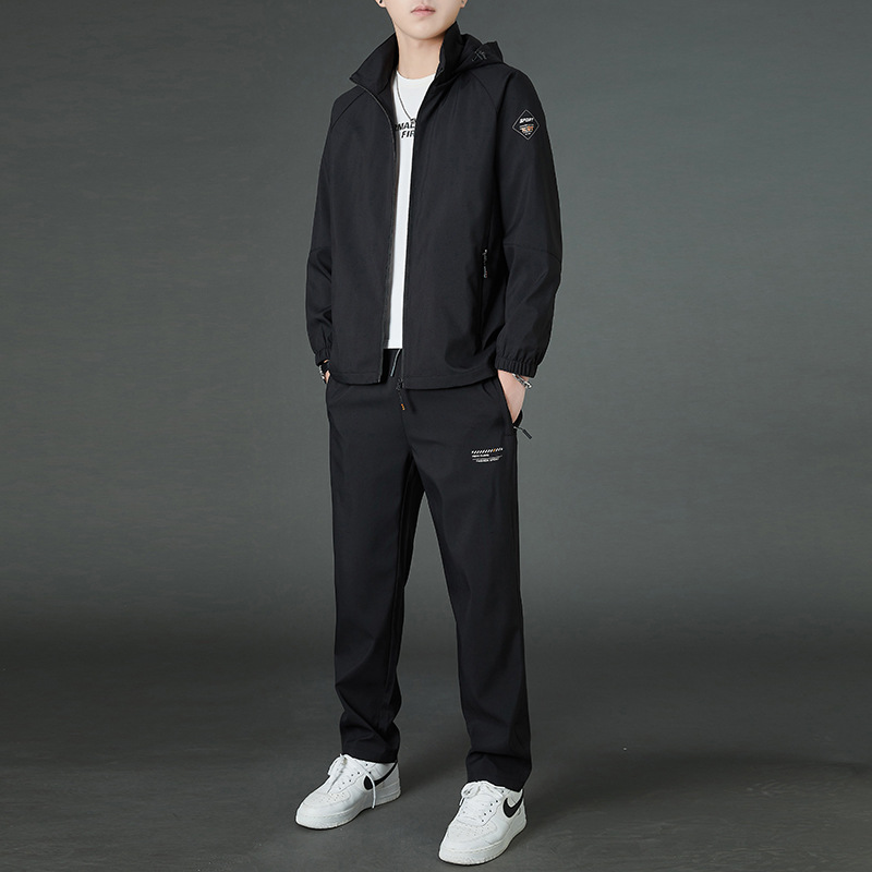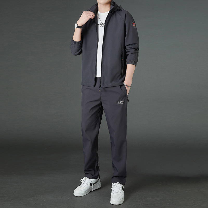봄 남자 스포츠 레저 투피스 2025 새로운 가을 느슨한 스탠드 칼라 후드 코트 스트레이트 롱 팬츠스토어 가기