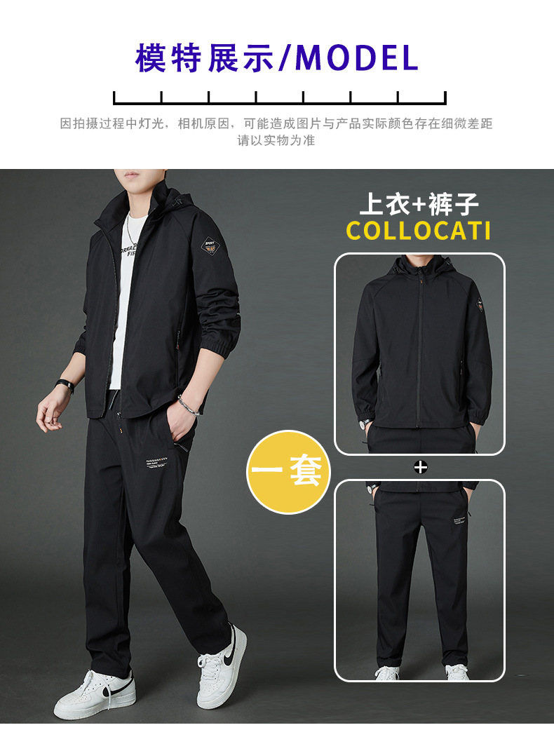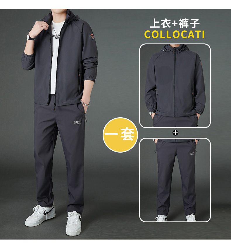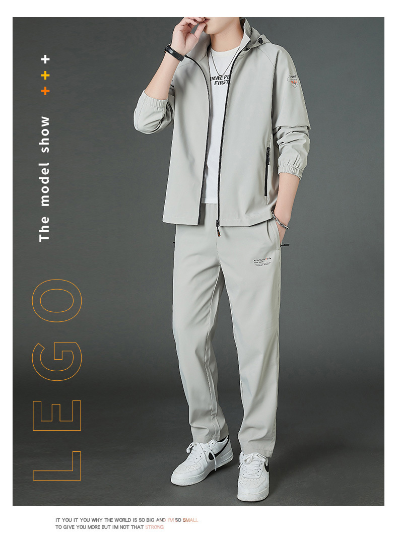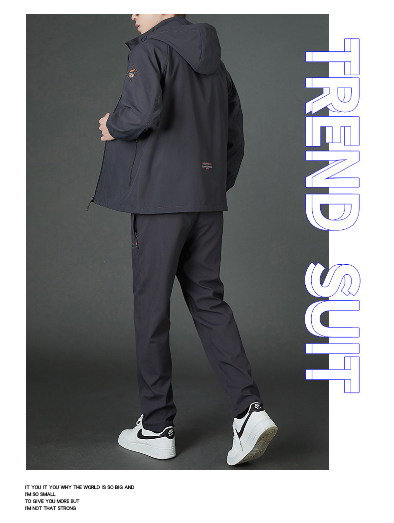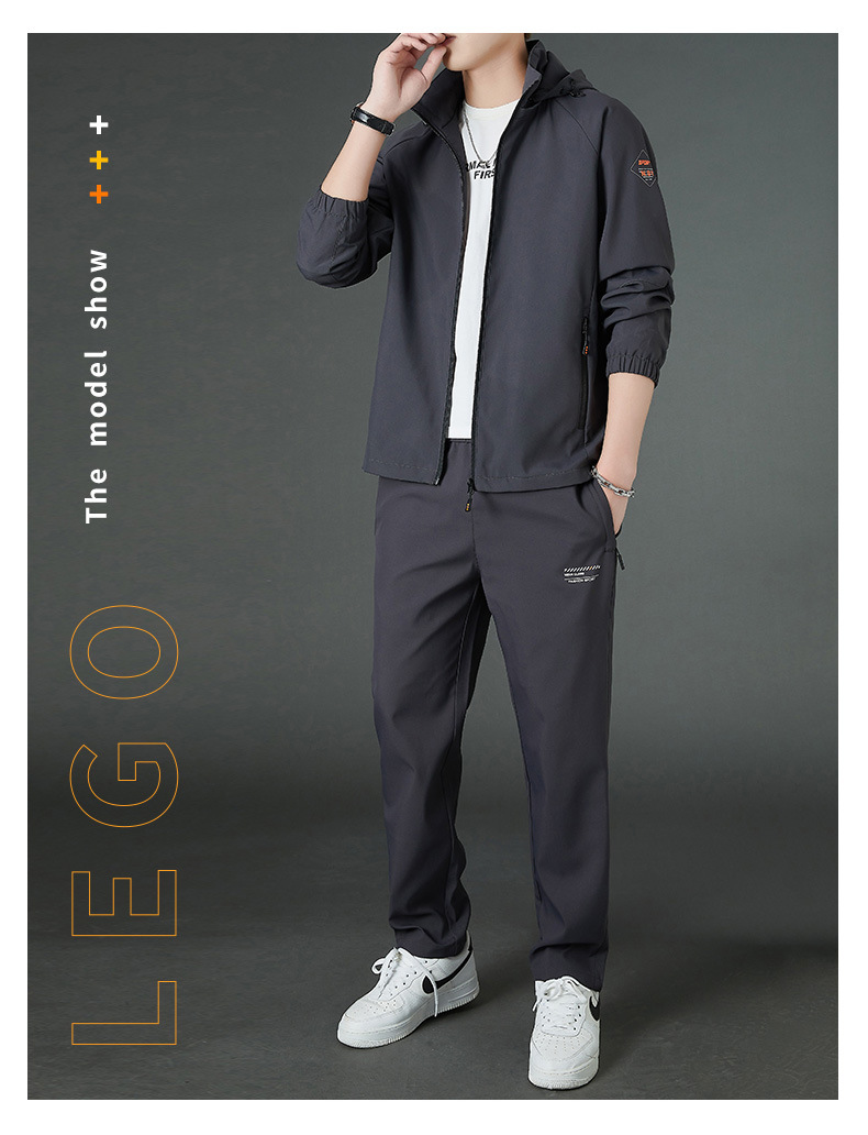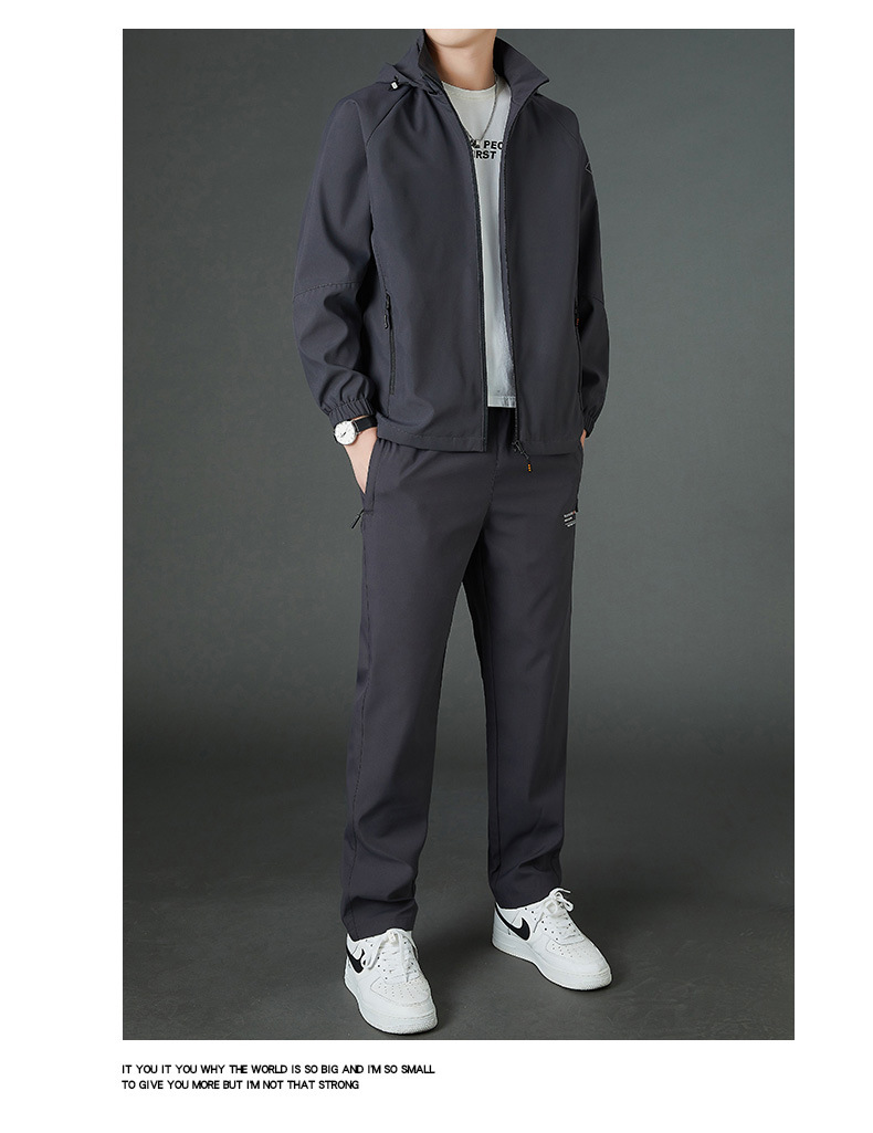 봄 남자 스포츠 레저 투피스 2025 새로운 가을 느슨한 스탠드 칼라 후드 코트 스트레이트 롱 팬츠스토어 가기