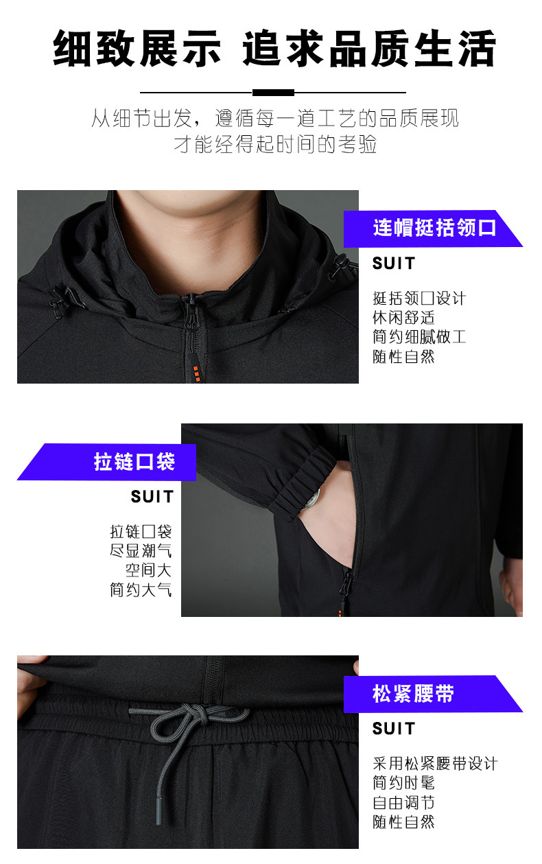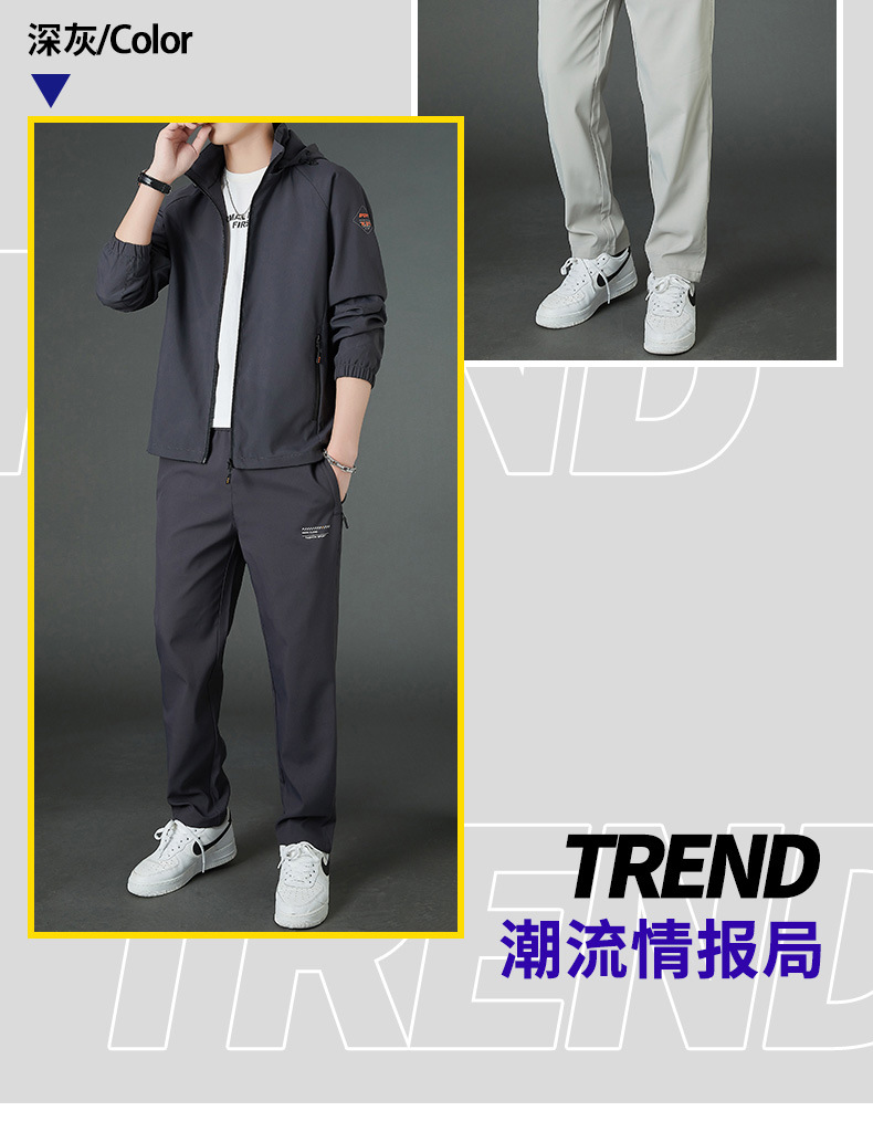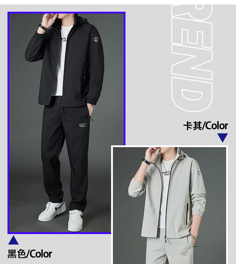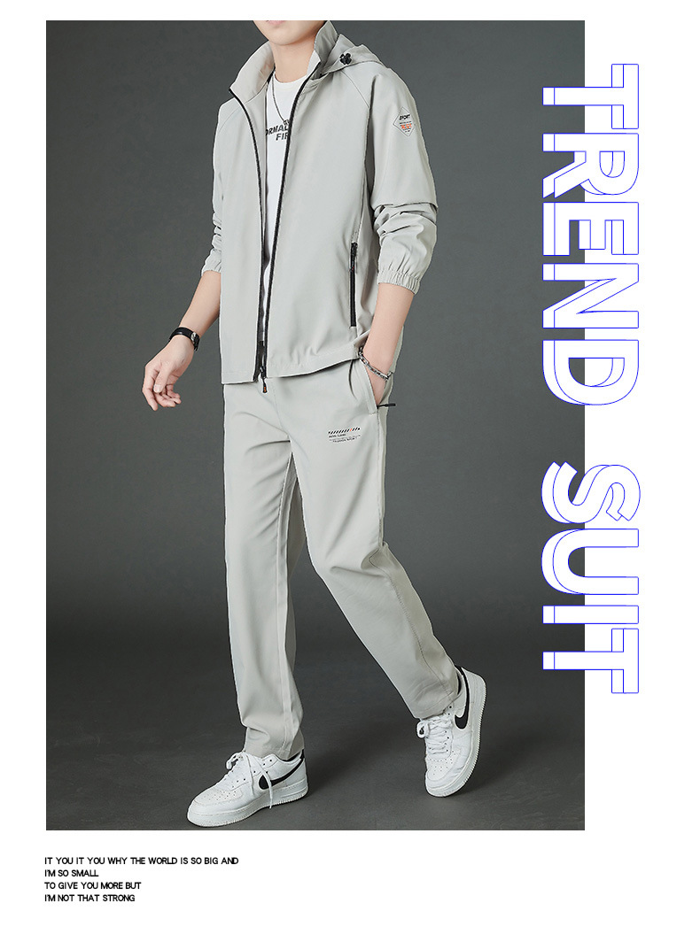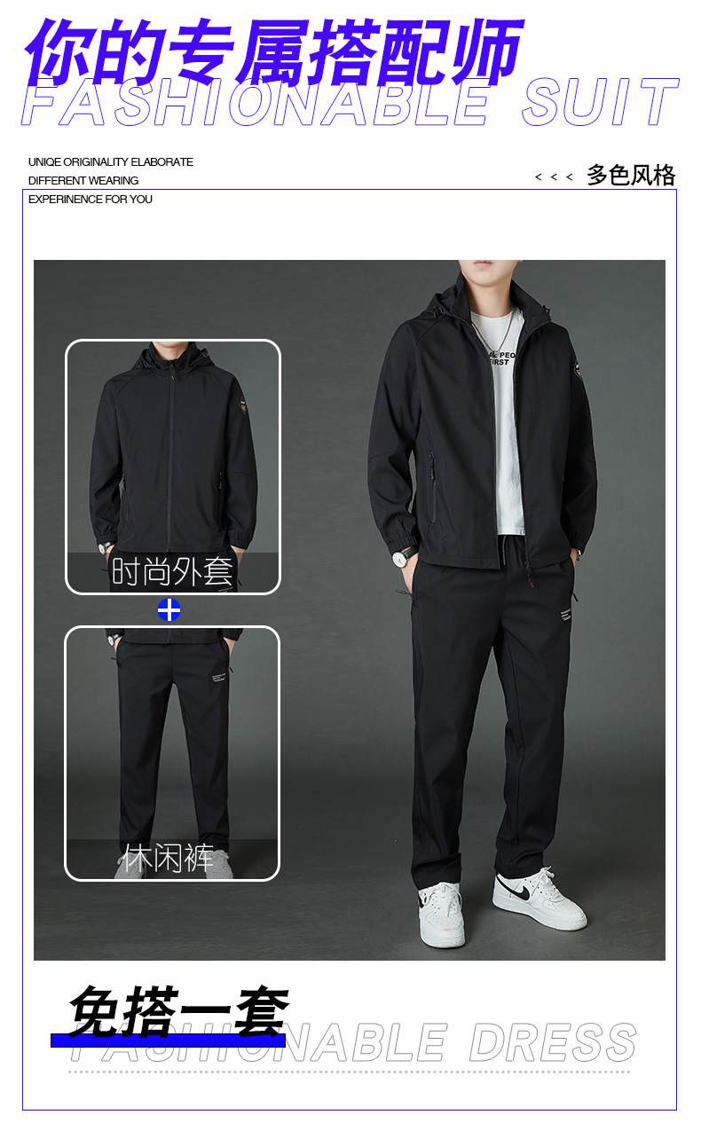 봄 남자 스포츠 레저 투피스 2025 새로운 가을 느슨한 스탠드 칼라 후드 코트 스트레이트 롱 팬츠스토어 가기