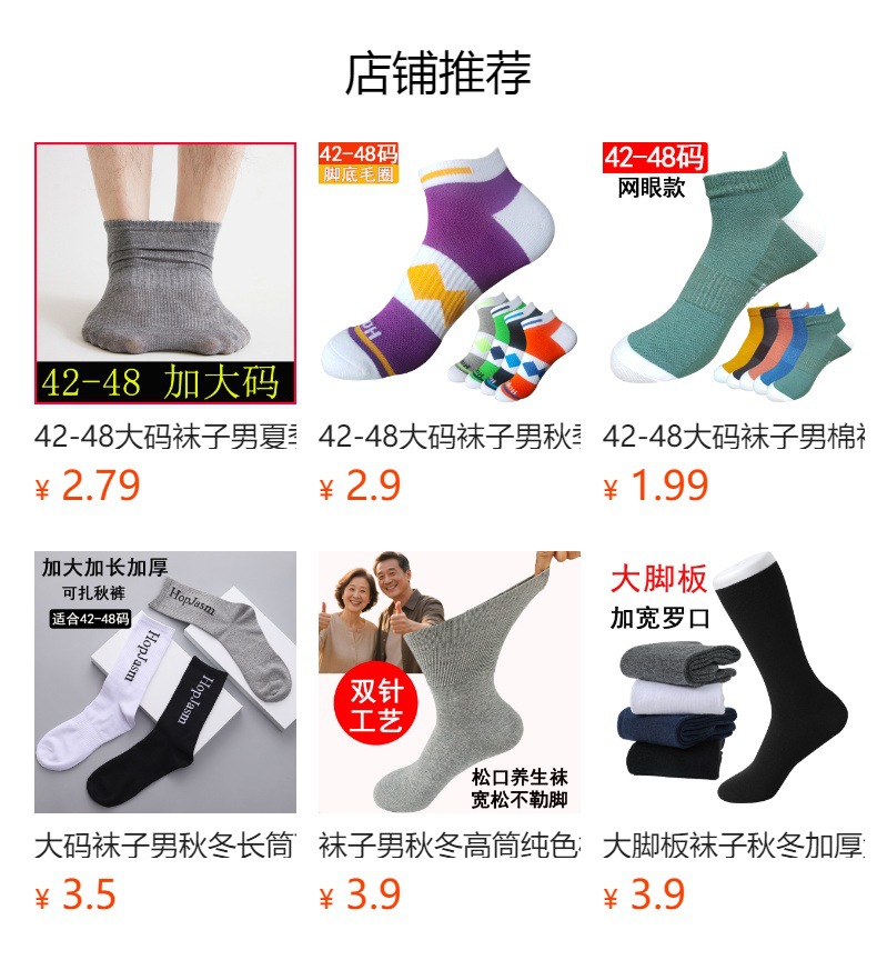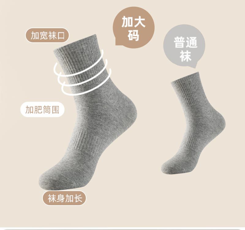 플러스 사이즈 양말 남자의 초대형 지방 땀 흡수성 통기성 단색면 양말 사계절 스포츠 양말 큰 발 양말스토어 가기