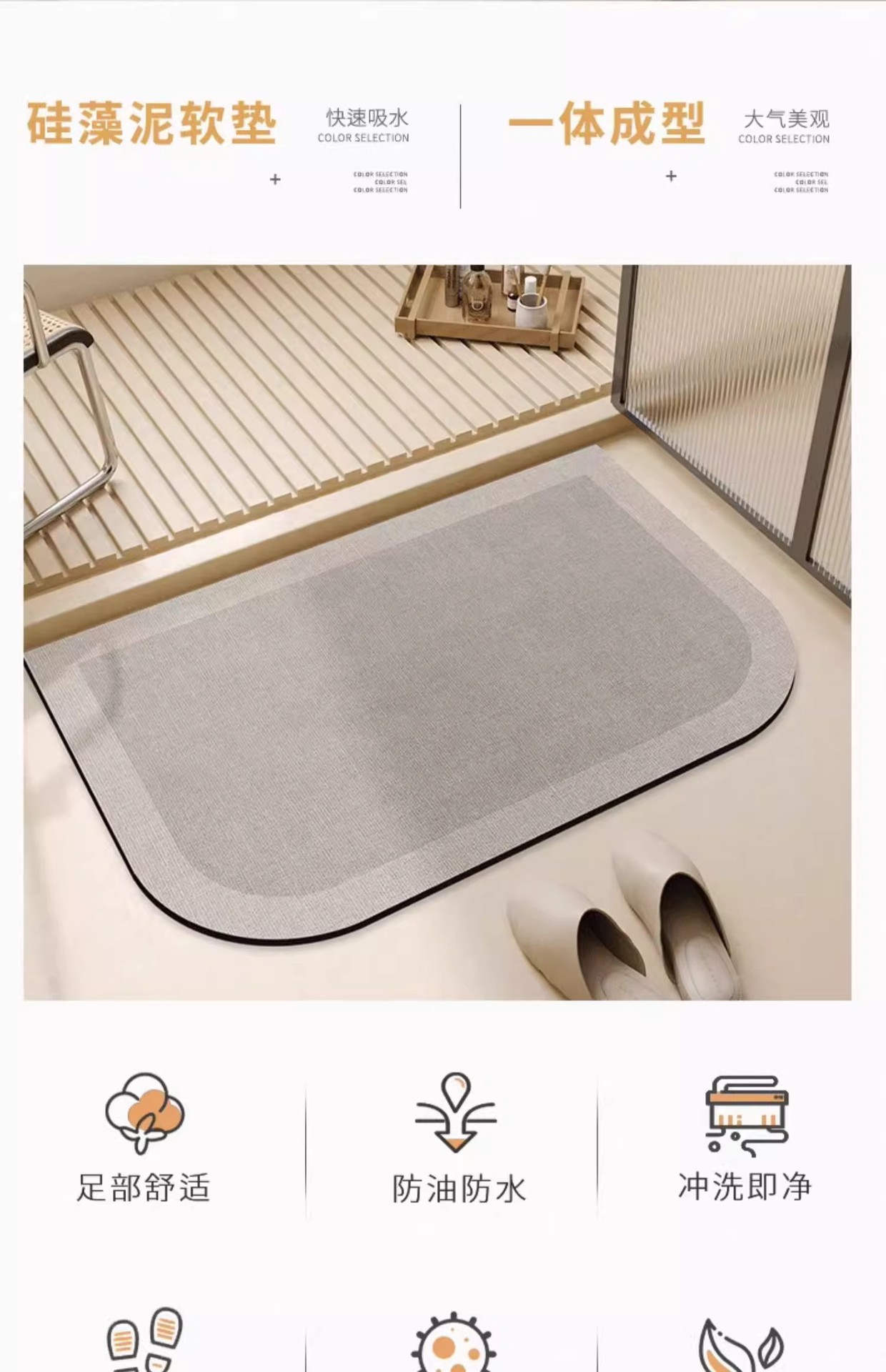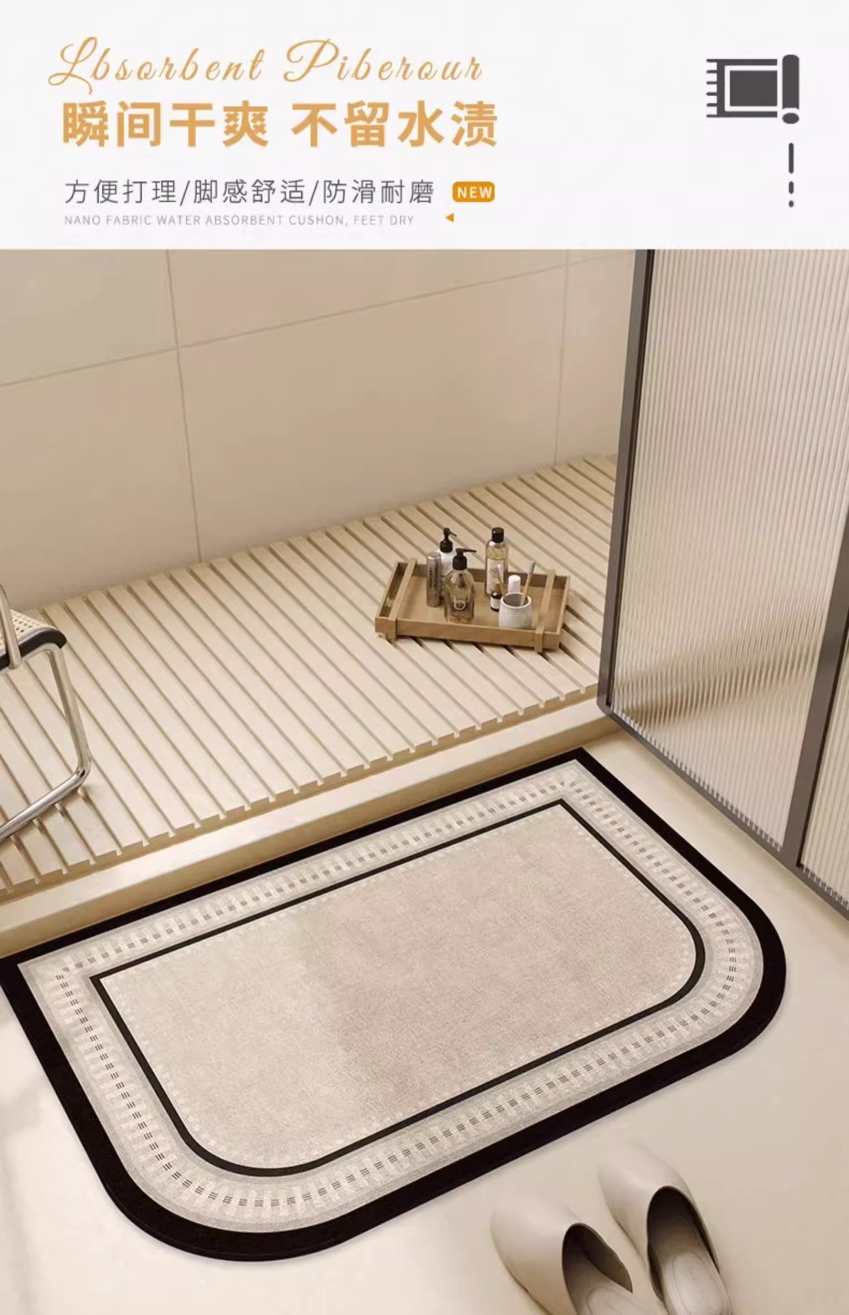 Nordic Diatom 진흙 바닥 매트 욕실 문 흡수성 빠른 건조 간편한 발 매트 가정용 미끄럼 방지 욕실 바닥 매트