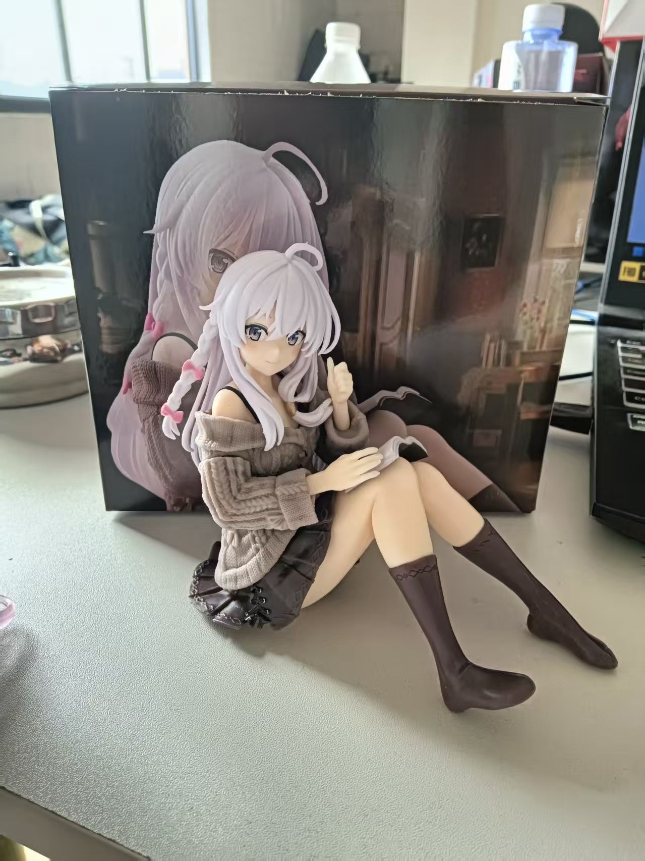마녀의 여행 엘레이나 앉아서 책을 읽는 아름다운 소녀 피규어, 짧은 치마를 입은 애니메이션 2차원 캐릭터, 컴퓨터 케이스 및 자동차 장식품스토어 가기