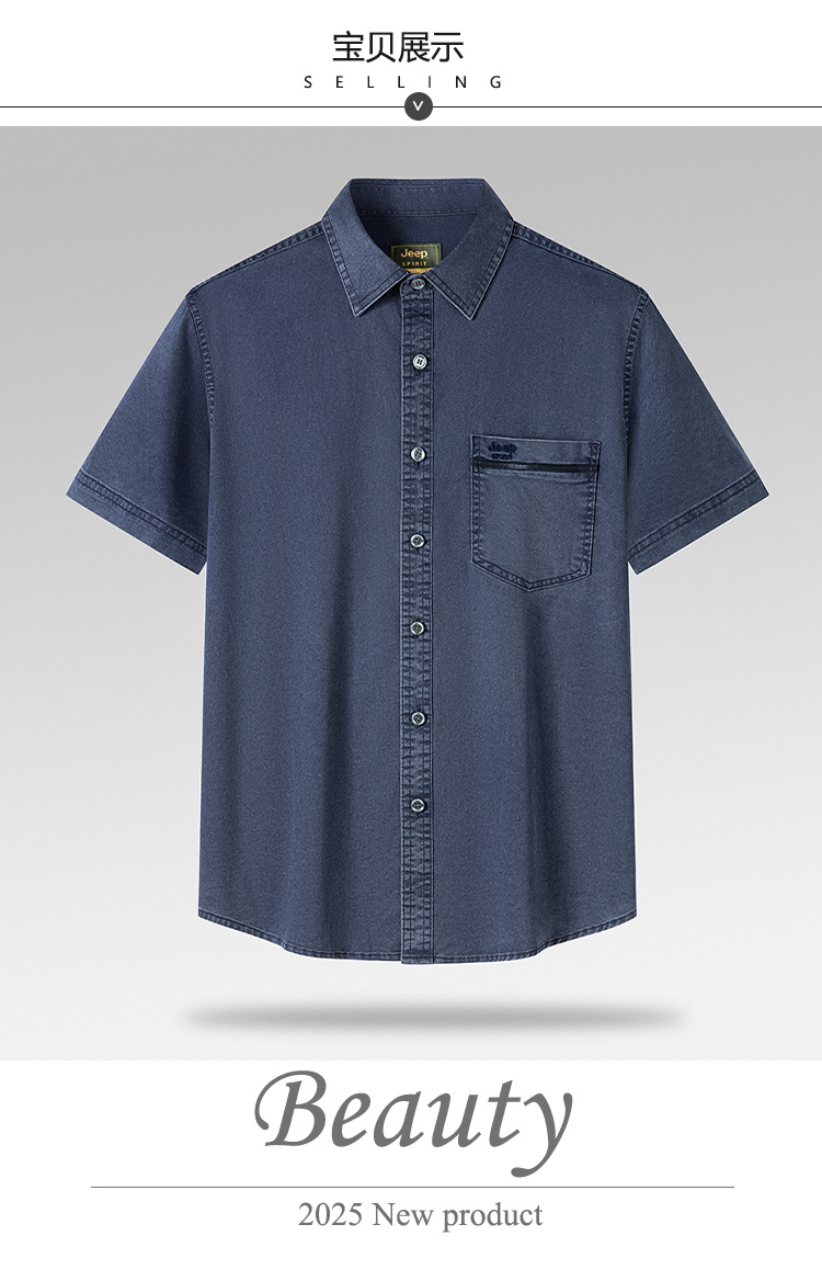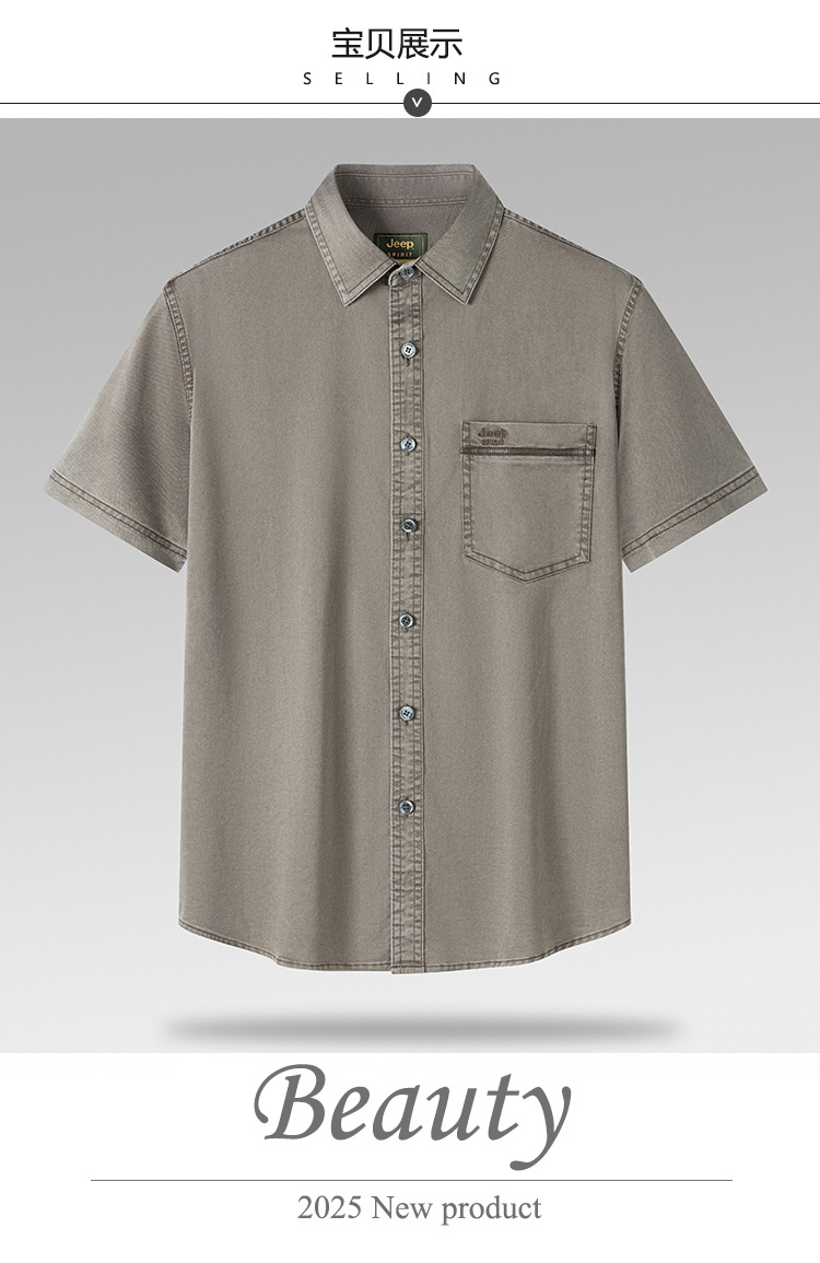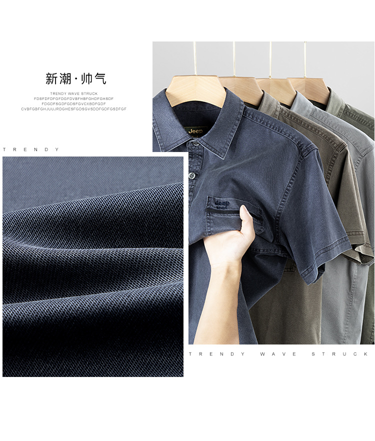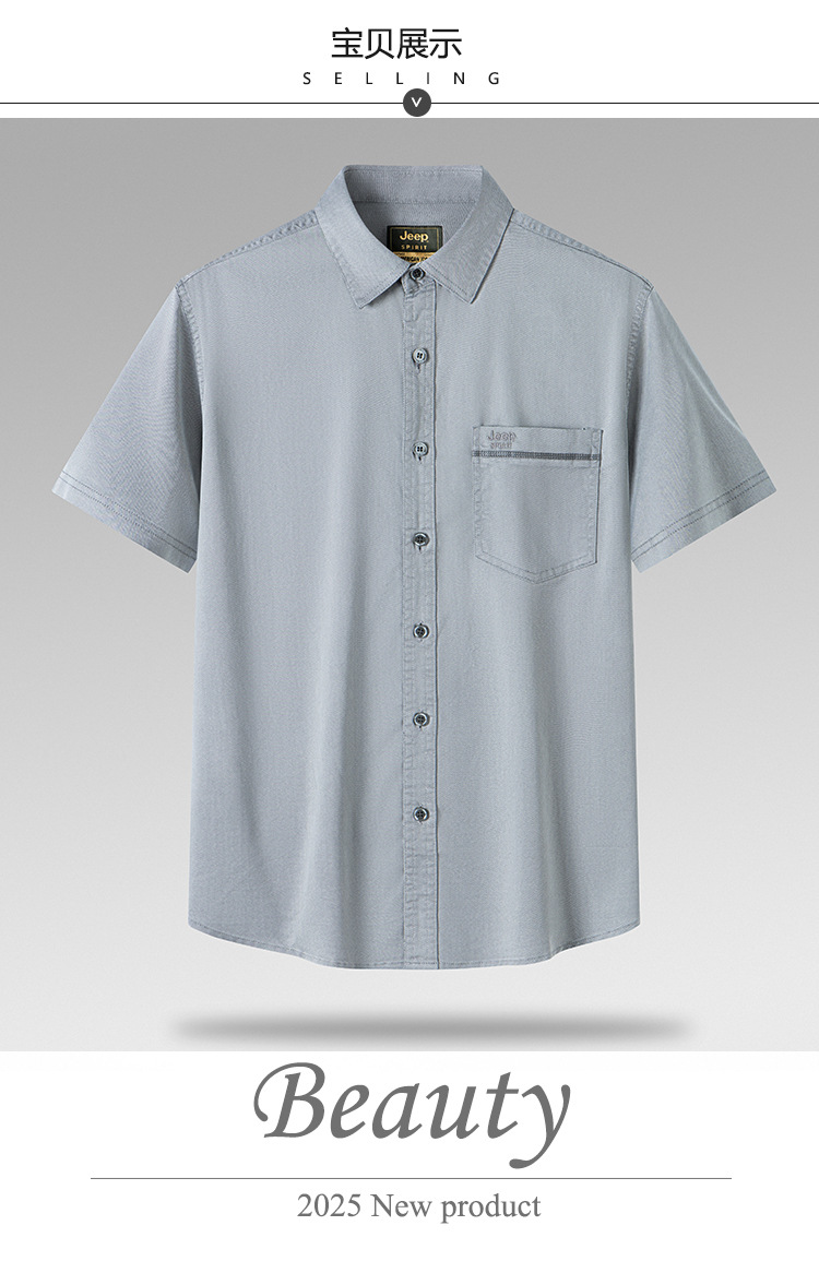 여름 브랜드 남성 텐셀 칼라 셔츠 느슨한 단색 패션 탑 버튼 수 놓은 짧은 소매 얇은 2093