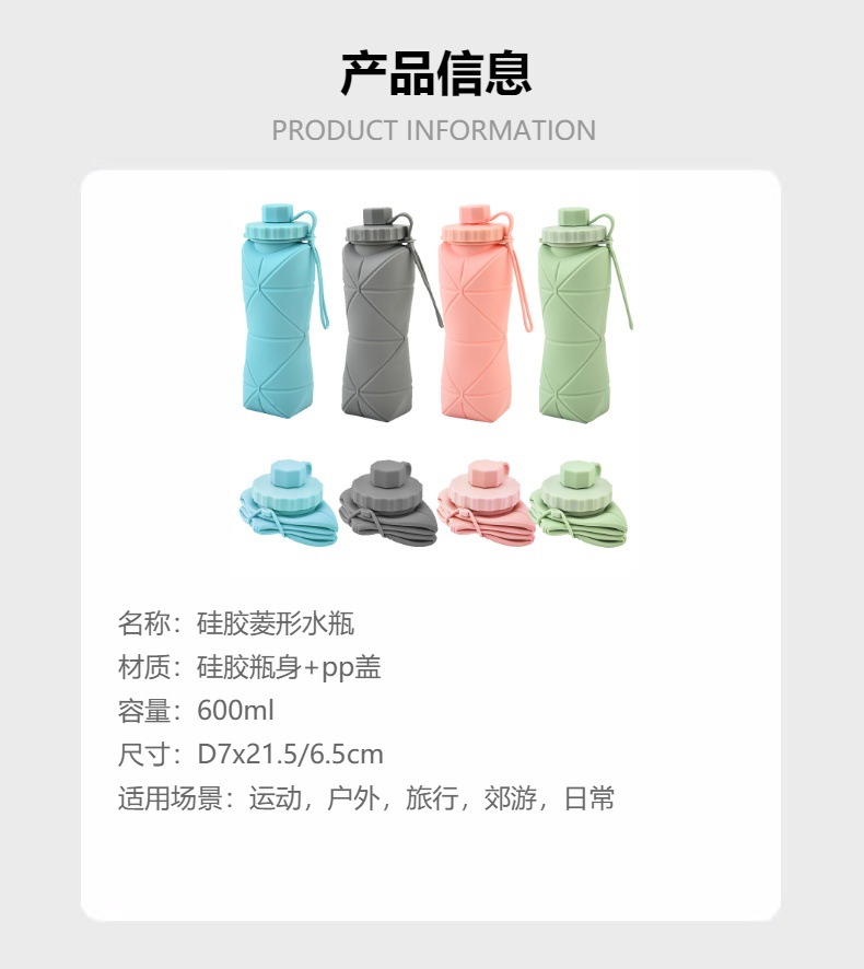 국경 실리콘 접는 물 컵 야외 휴대용 개폐식 물 컵 스포츠 손잡이 다이아몬드 물병 주전자