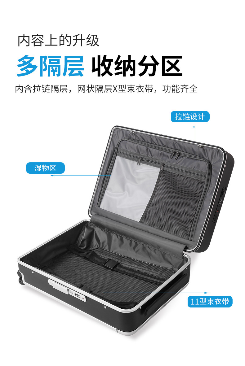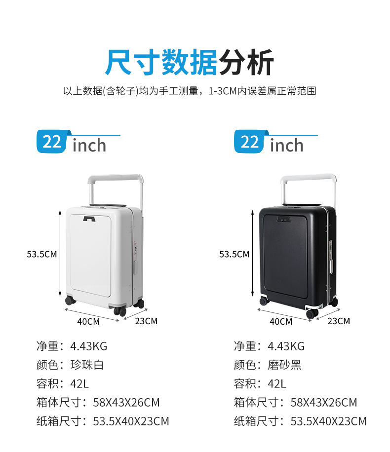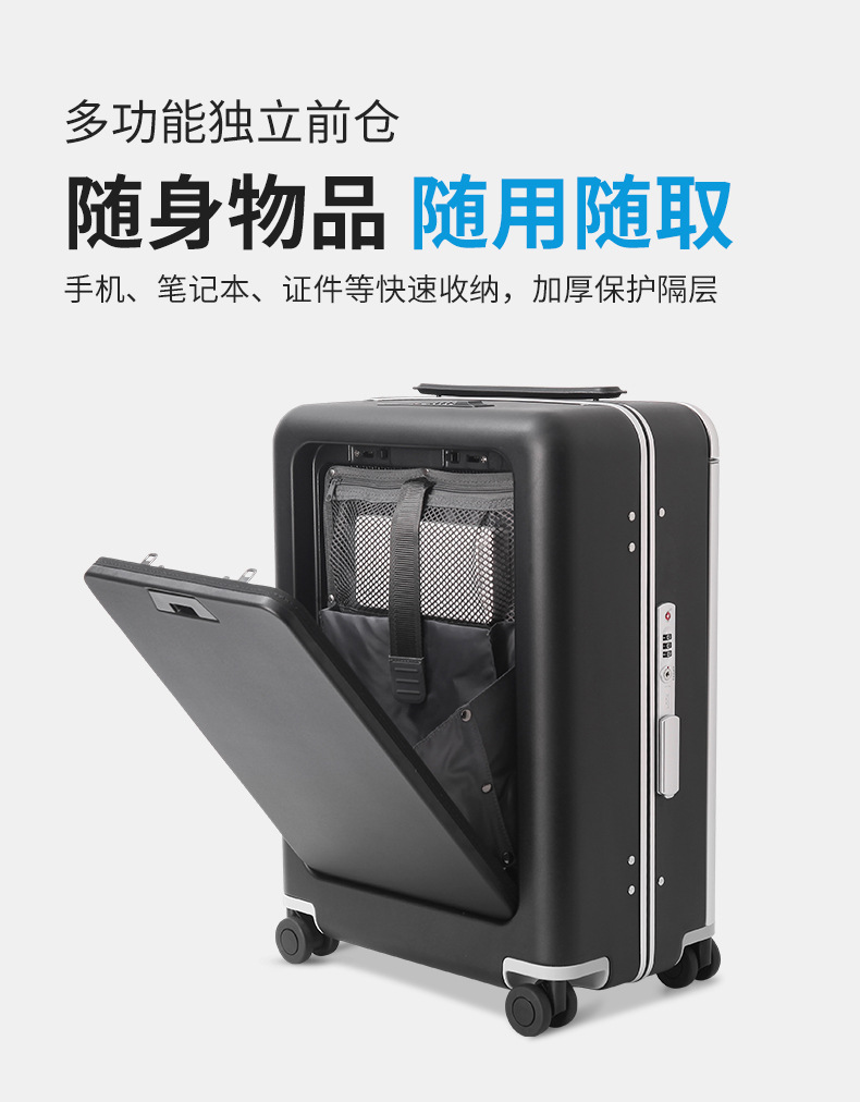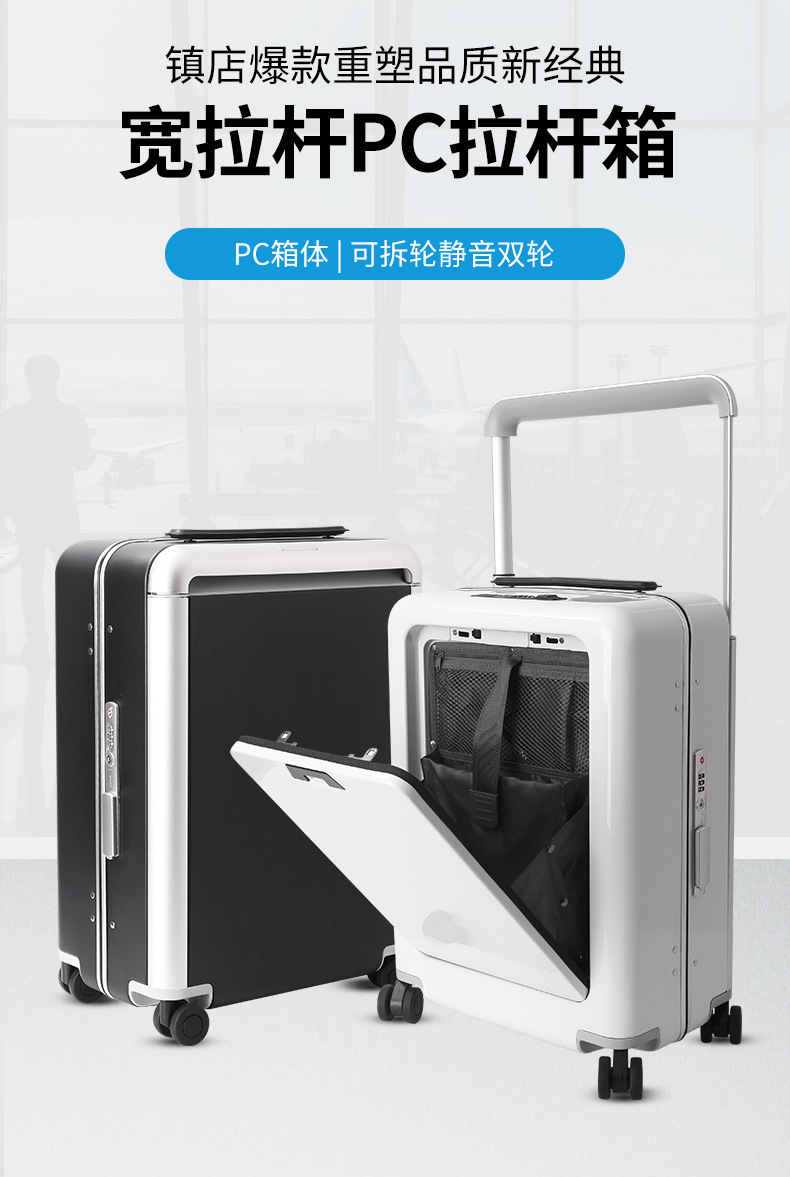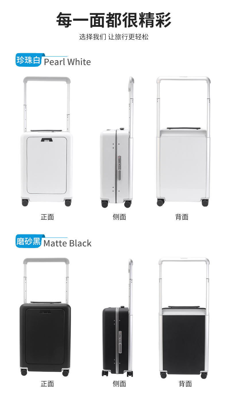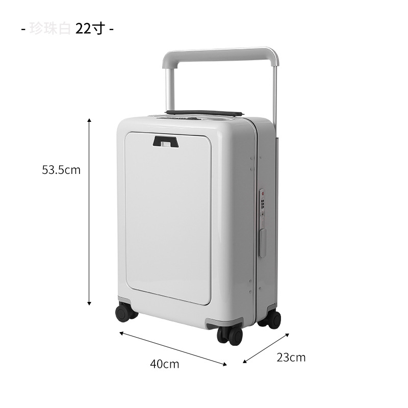 트립쇼 전면 개방형 와이드 트롤리 캐리어 20inch 화이트 고급스러운 다기능 비밀번호 잠금 탑승 캐리어