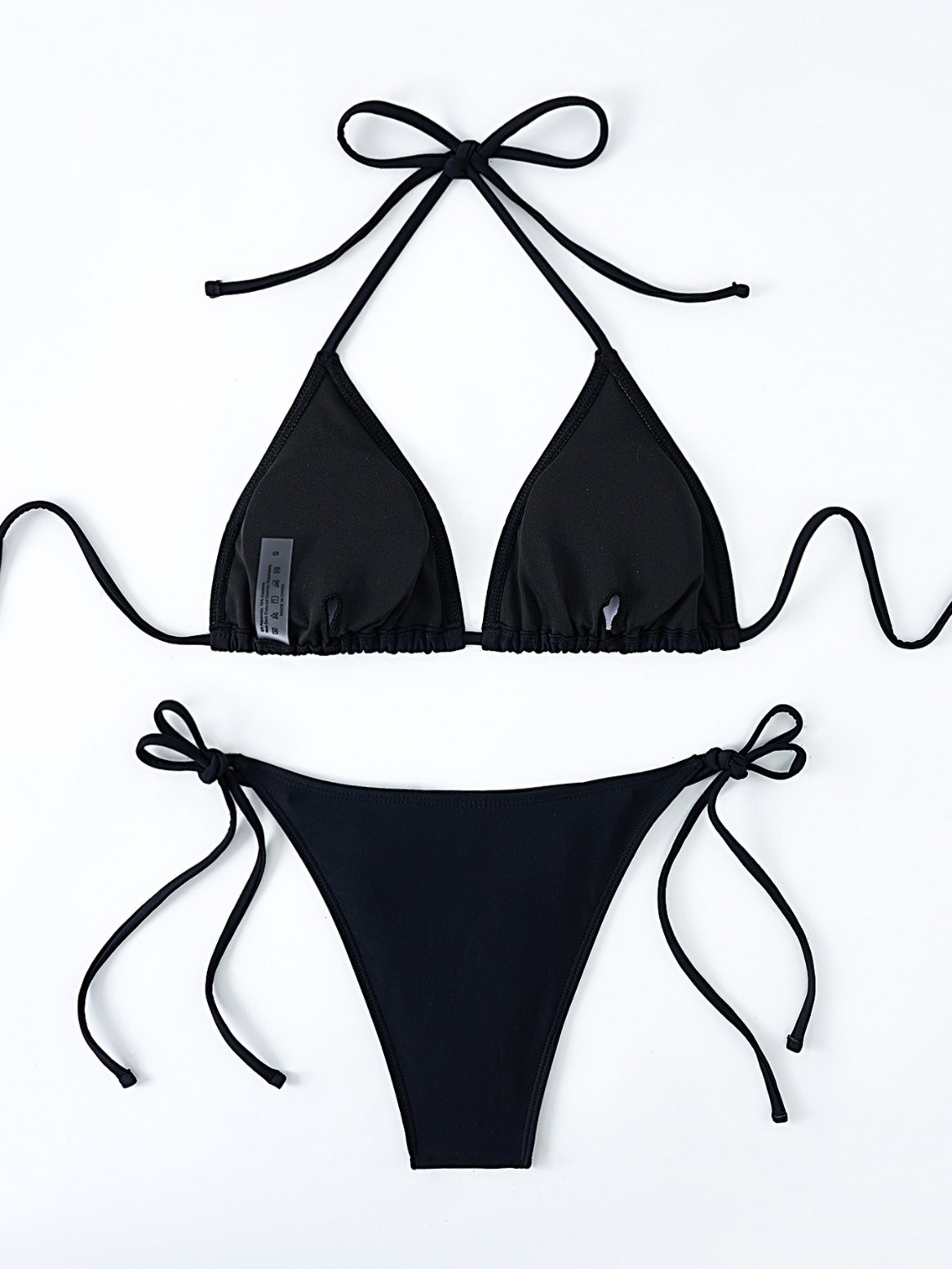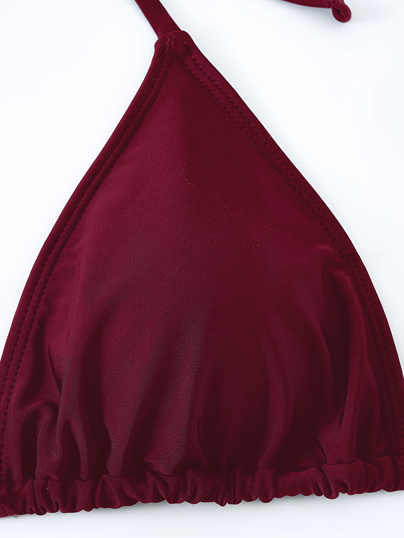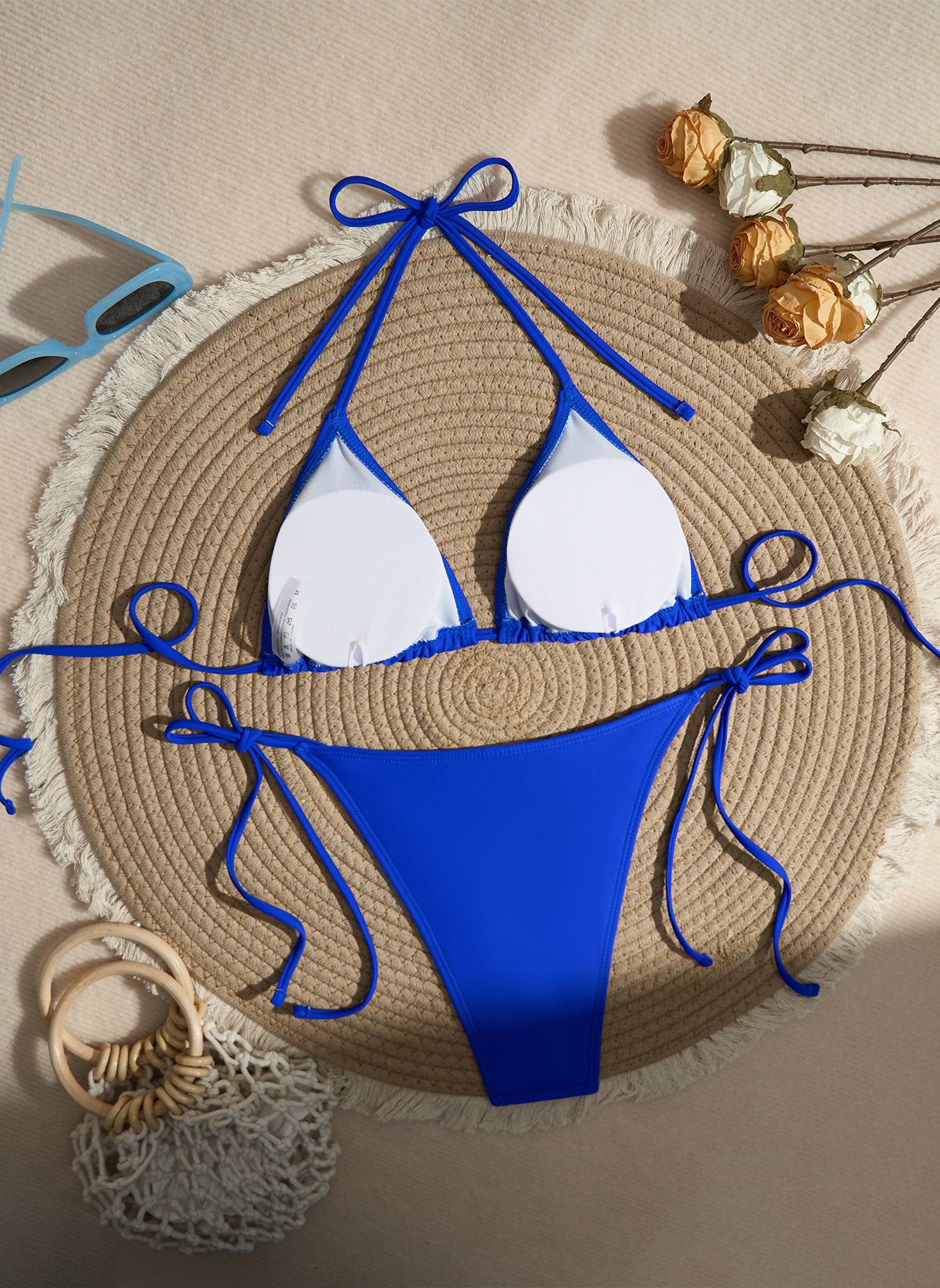 솔리드 컬러 삼각형 가방 비키니 수영복 레이스 업 섹시한 높은 탄성 수영복 여성 분리 가능한 가슴 패드 빠른 건조 통기성