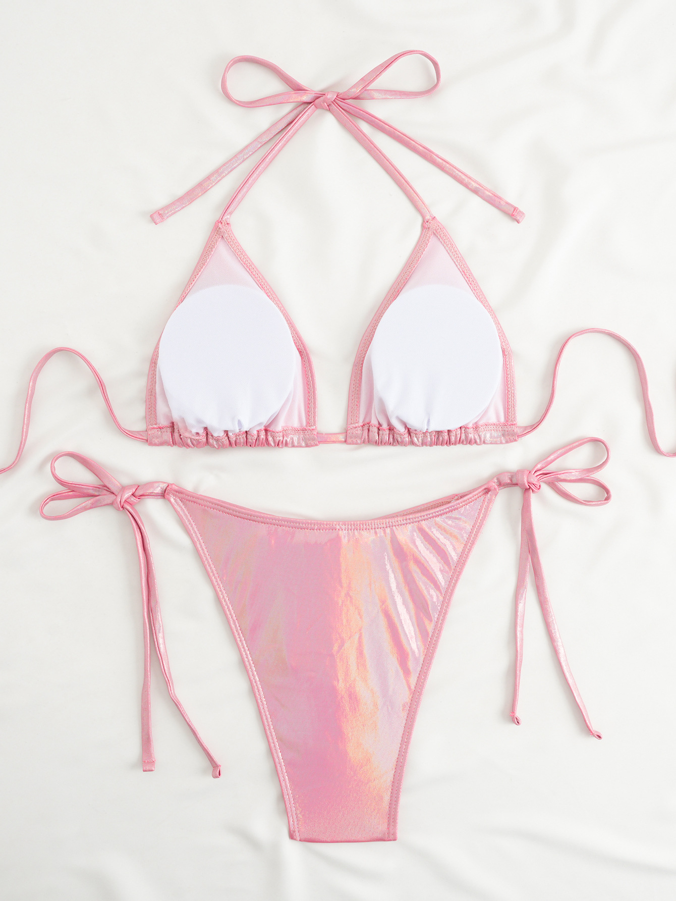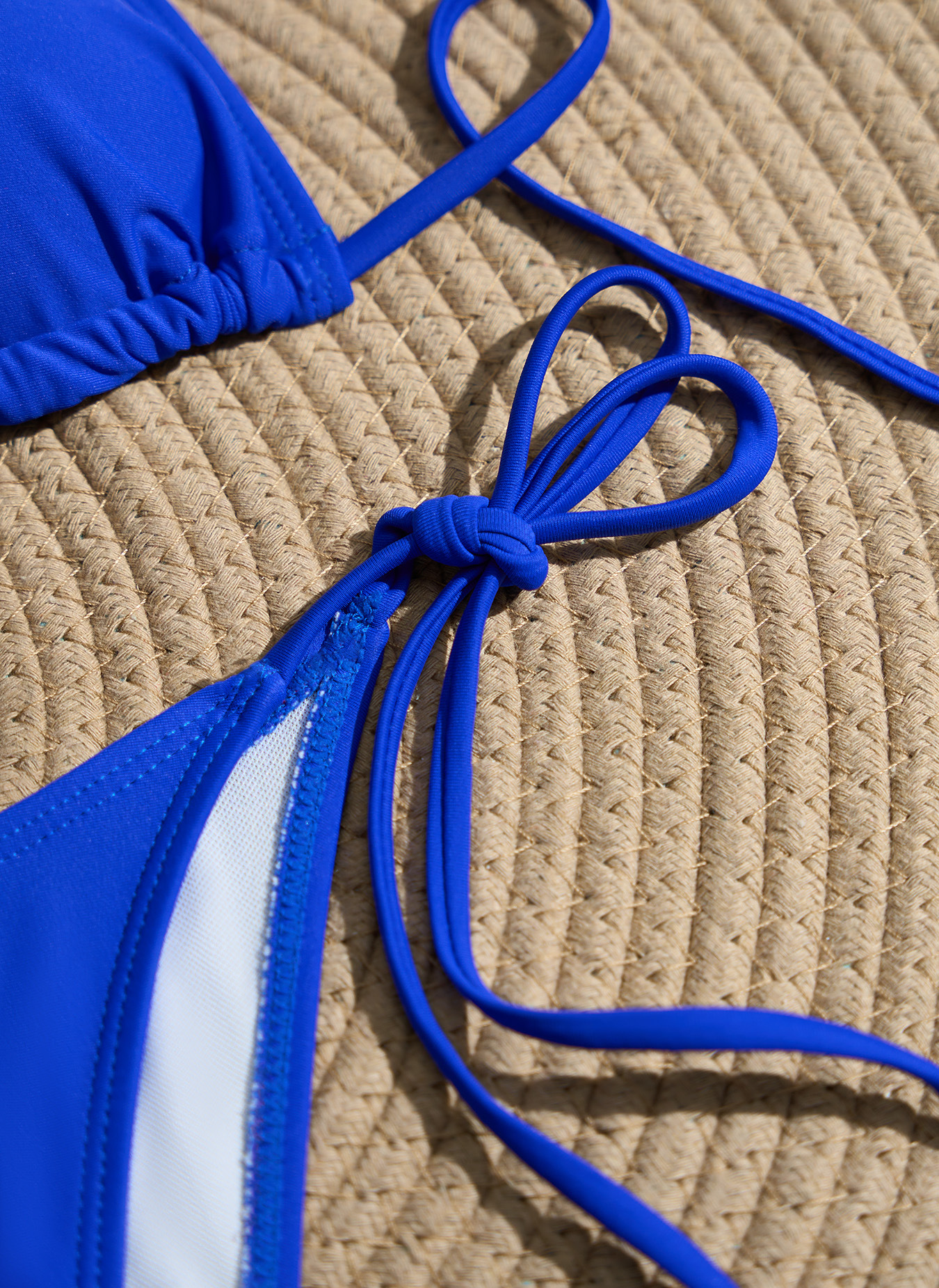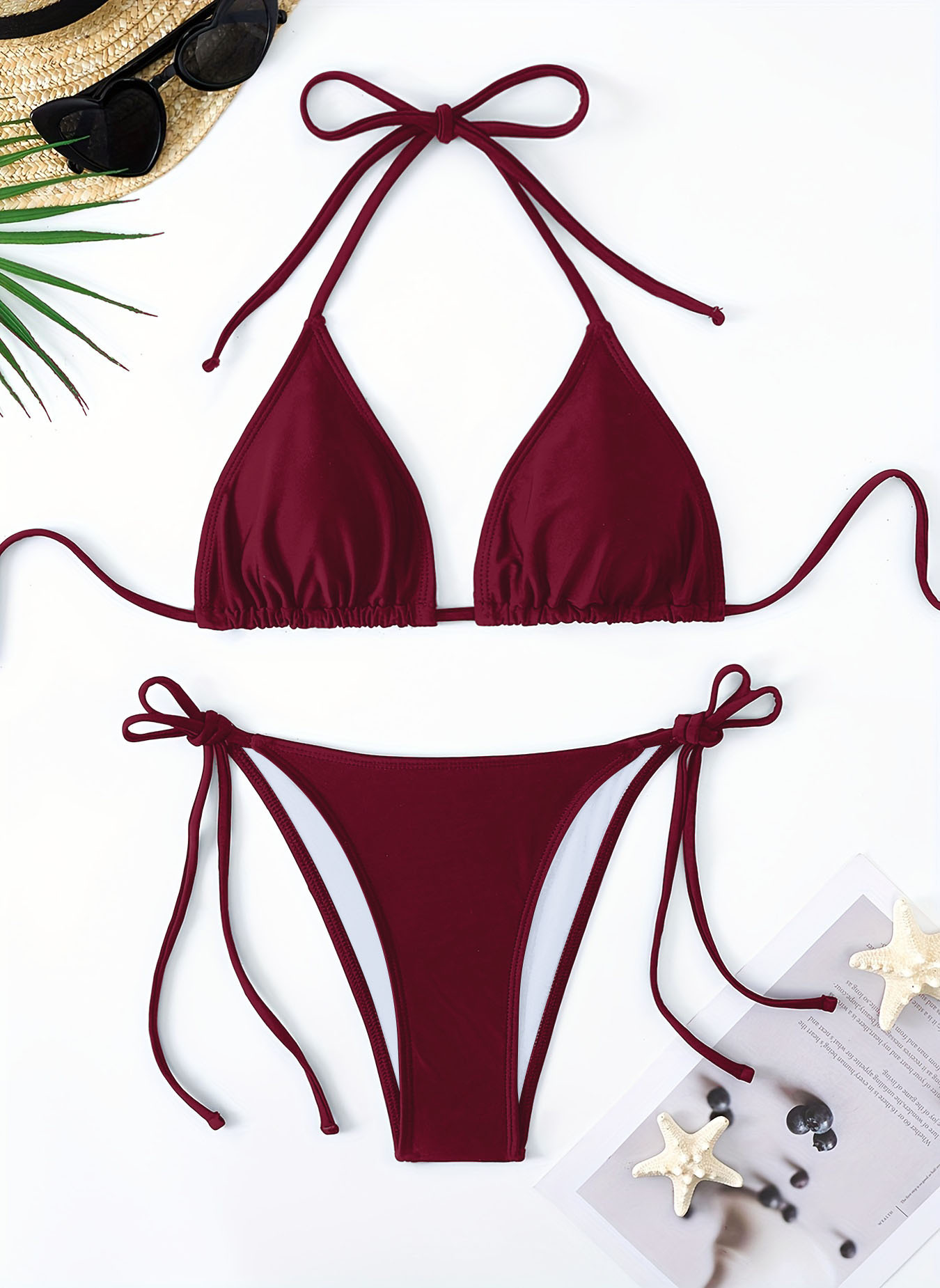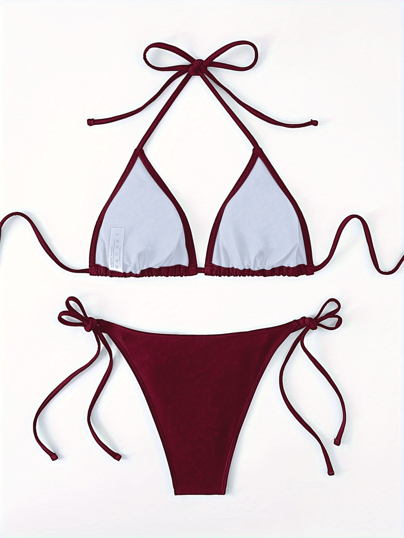 솔리드 컬러 삼각형 가방 비키니 수영복 레이스 업 섹시한 높은 탄성 수영복 여성 분리 가능한 가슴 패드 빠른 건조 통기성