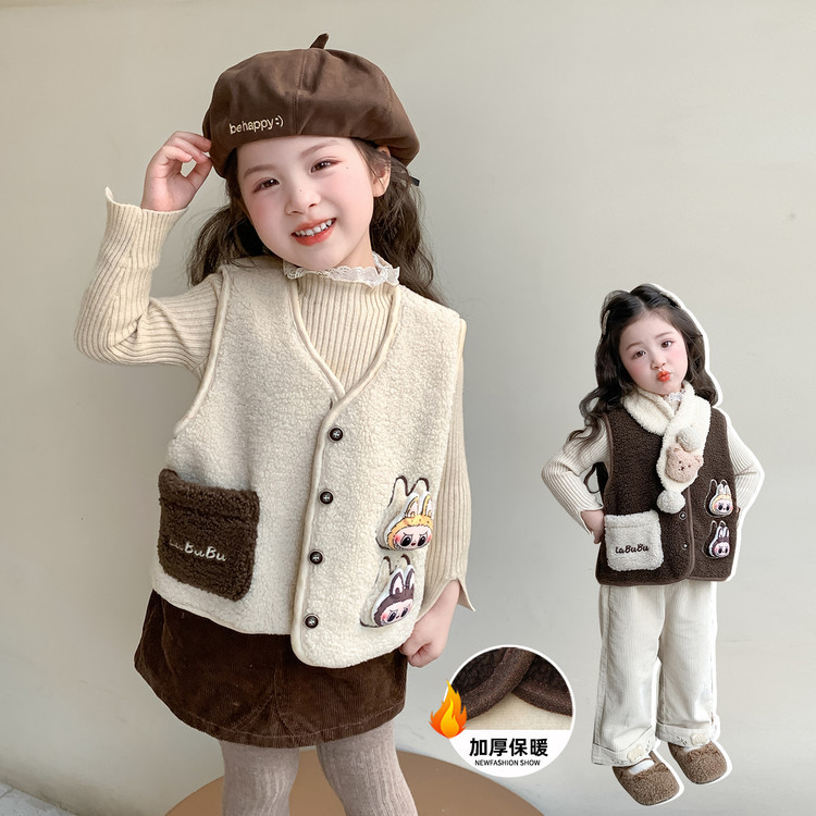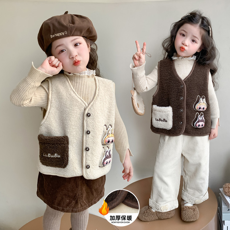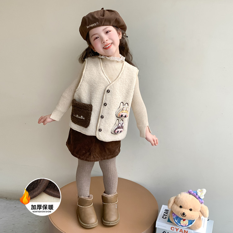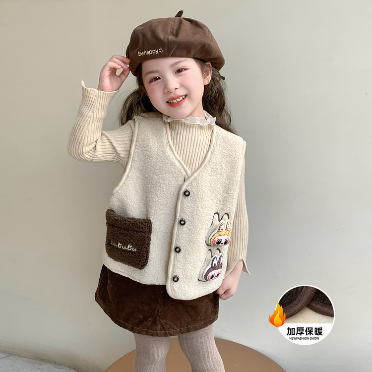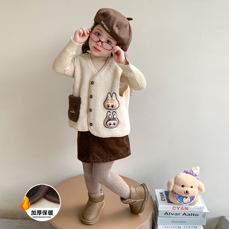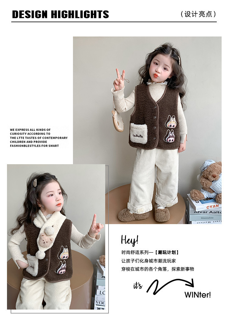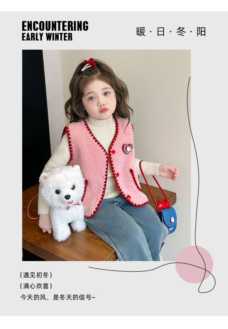 • 베이지 웨이차오 아동복 & 안경 강아지 털 조끼
