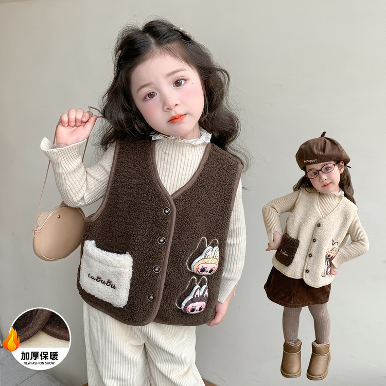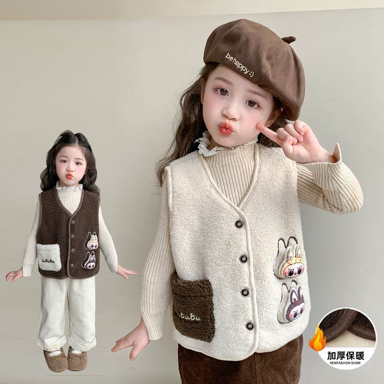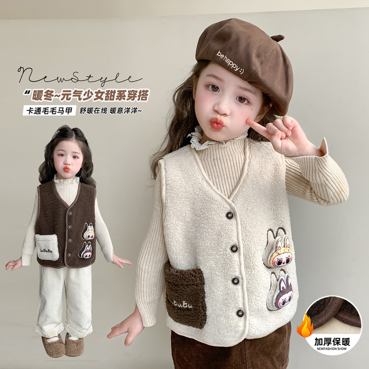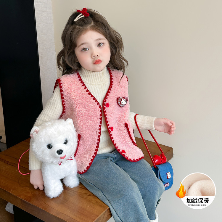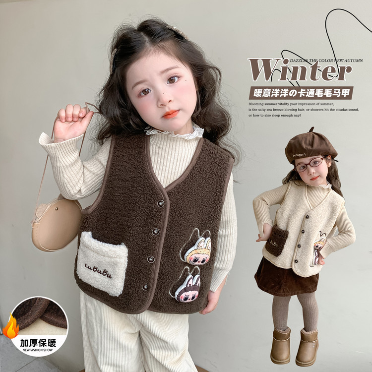 여아용 곱슬머리 털조끼, 어린이용 겨울용 만화&안경을 쓴 강아지 털조끼