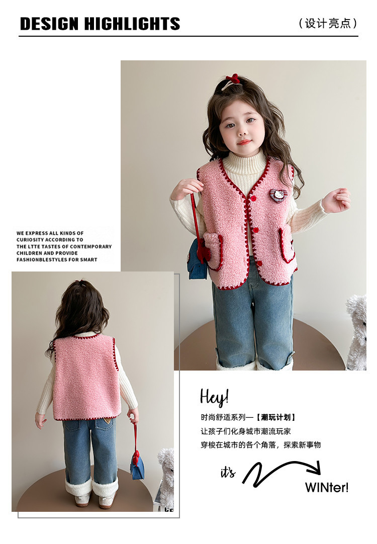 • 핑크웨이차오 아동복 & 곡선형 엣지 퍼 베스트
