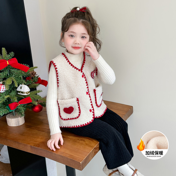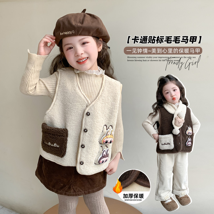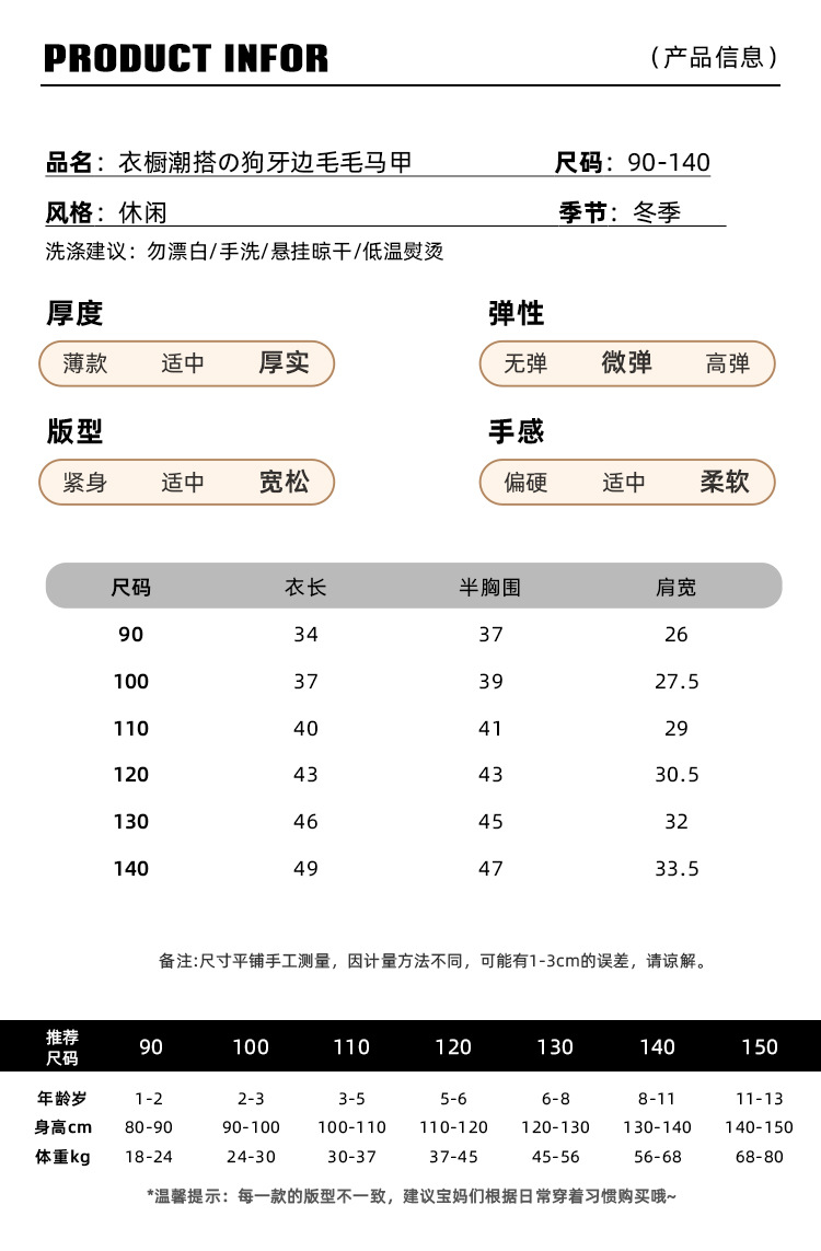 • 베이지 웨이차오 아동복 & 곡선 엣지 퍼 베스트