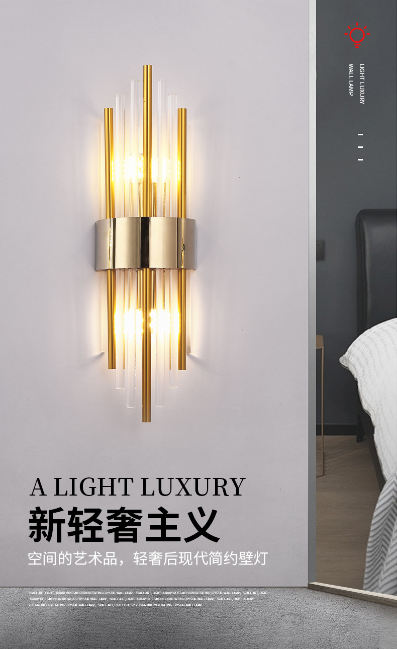 포스트 모던 크리스탈 벽 램프 라이트 럭셔리 거실 배경 벽 계단 통로 램프 복도 침실 침실 벽 램프 고급 감각