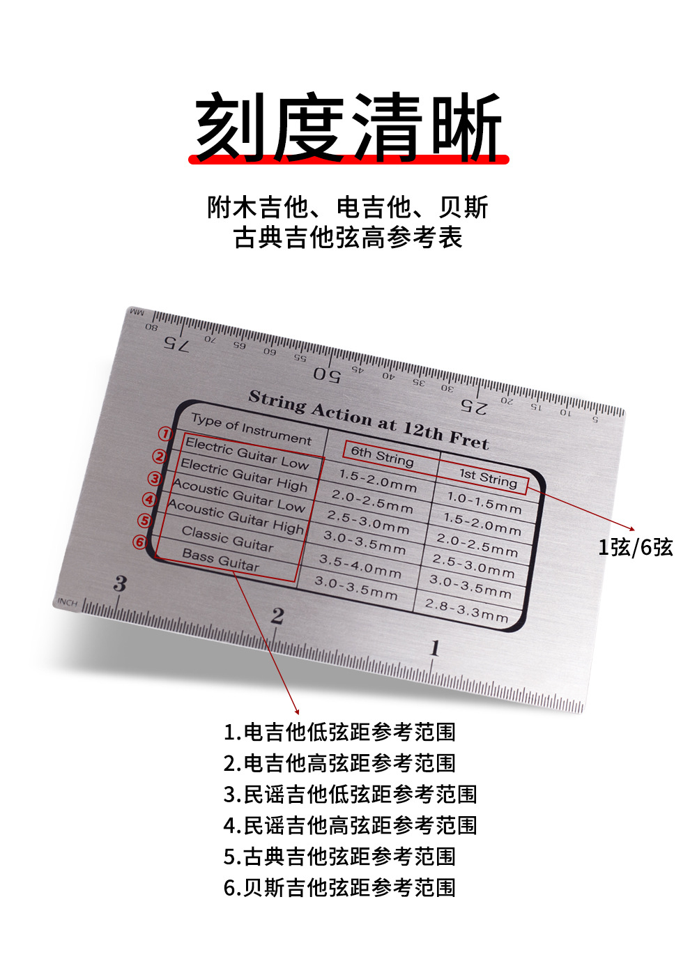 기타 액세서리 문자열 거리 측정 통치자베이스 클래식 튜닝 넥 끈 높이 캘리퍼 악기 액세서리 도구 문자열 거리 통치자