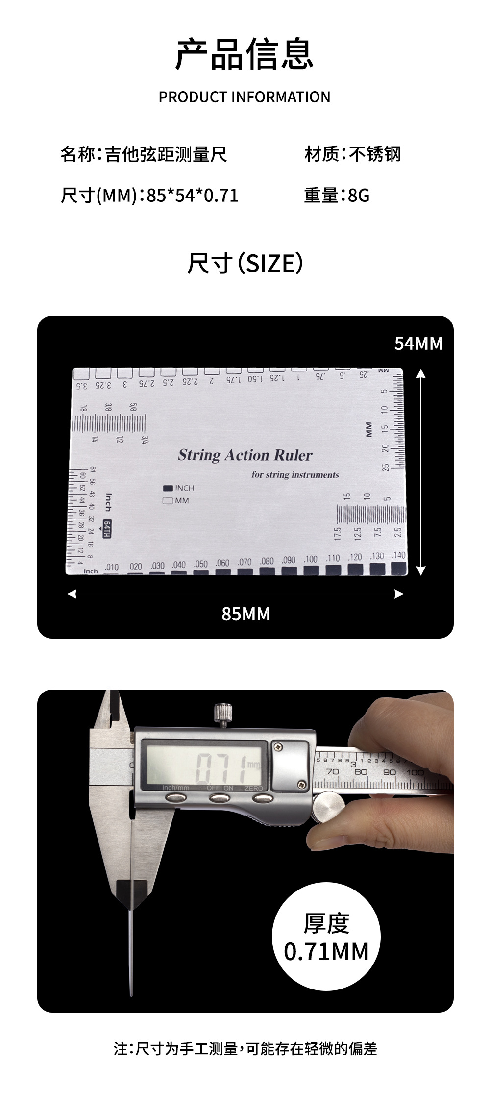 기타 액세서리 문자열 거리 측정 통치자베이스 클래식 튜닝 넥 끈 높이 캘리퍼 악기 액세서리 도구 문자열 거리 통치자스토어 가기
