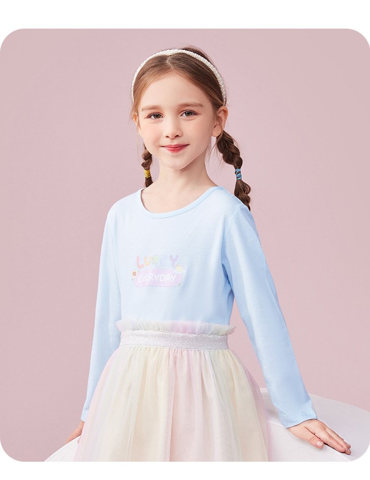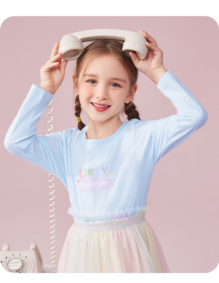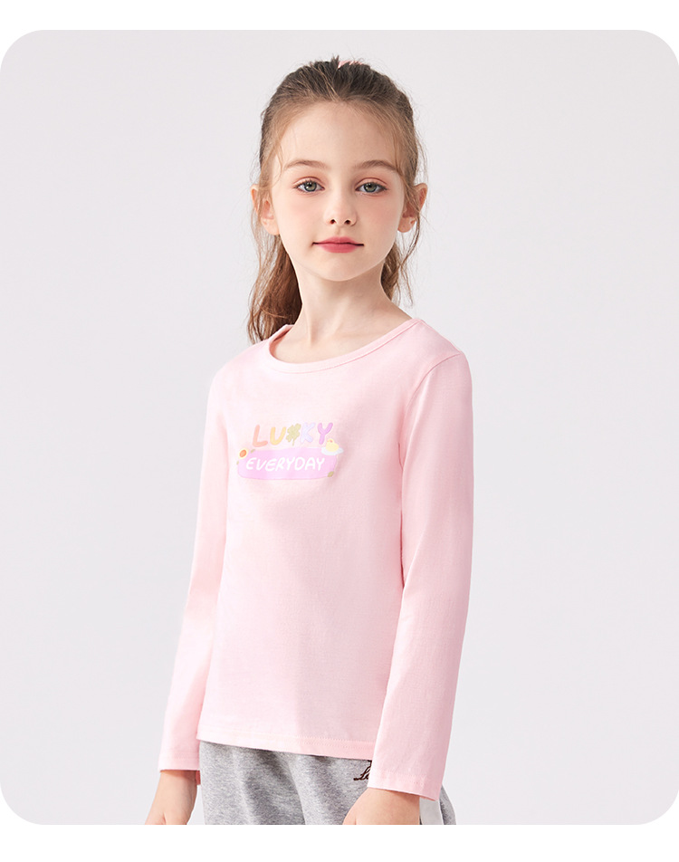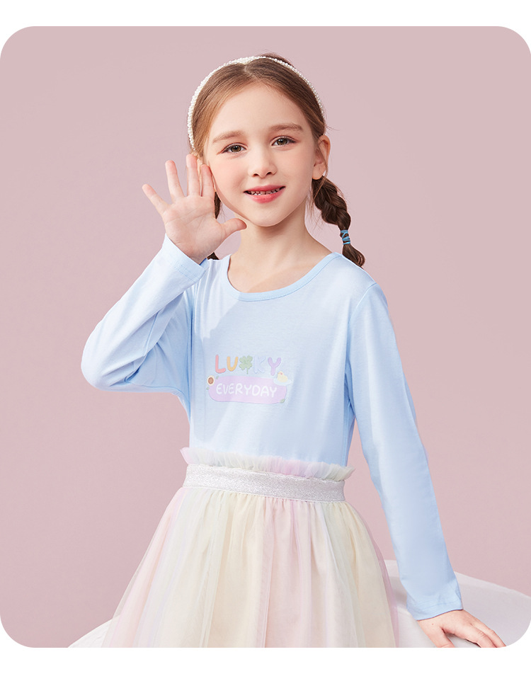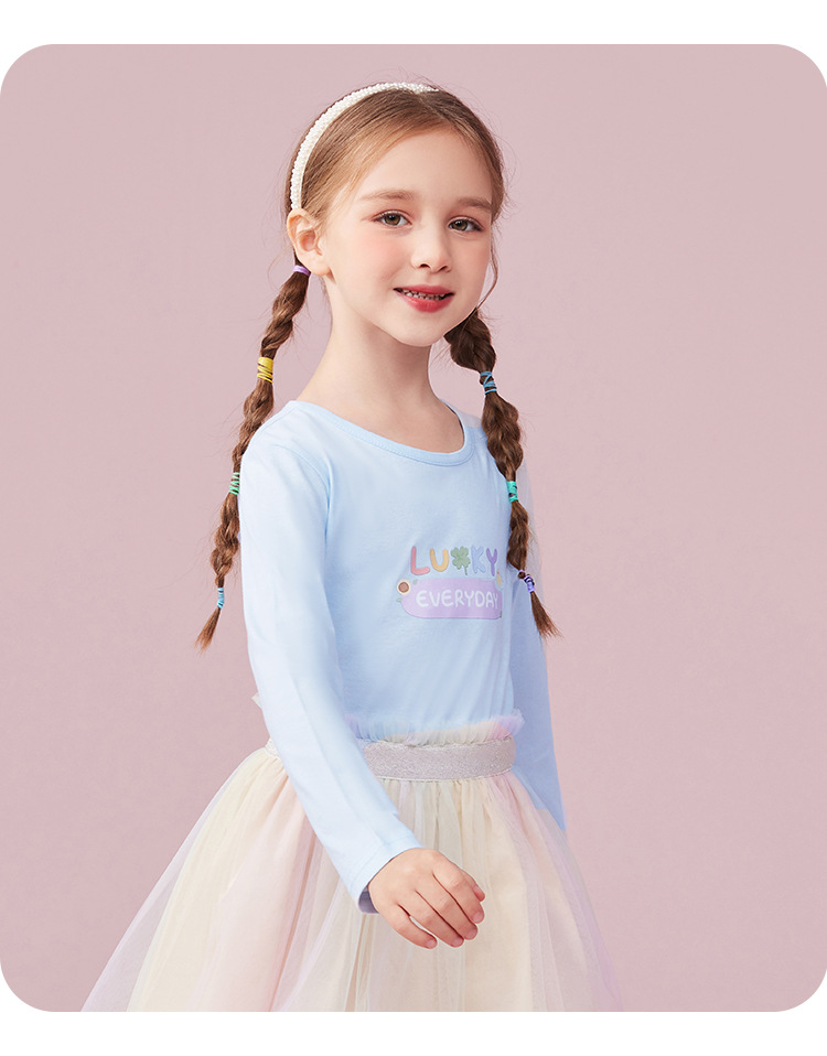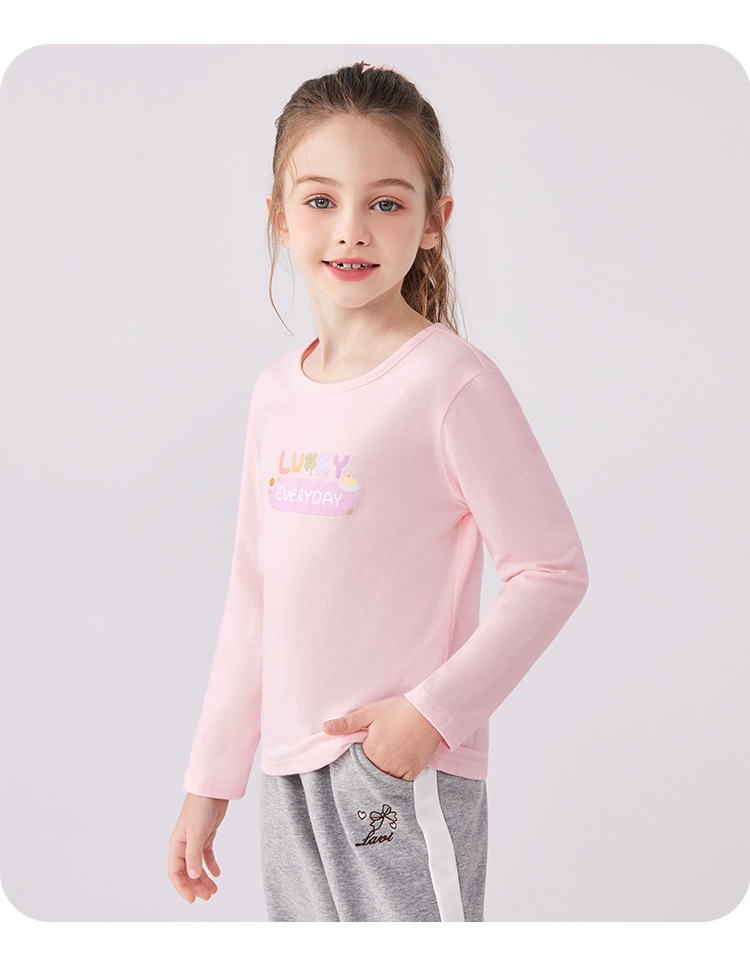 LAVI Spring New Girls Cotton 긴팔 티셔츠 어린이 캐주얼 크루 넥 레터 프린트 긴팔 티셔츠베이스 셔츠