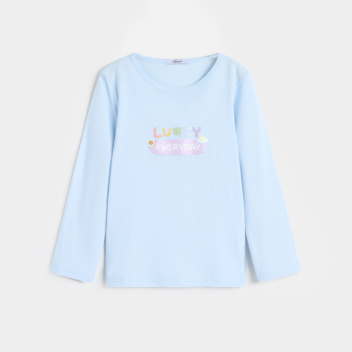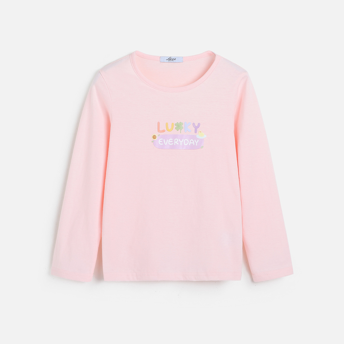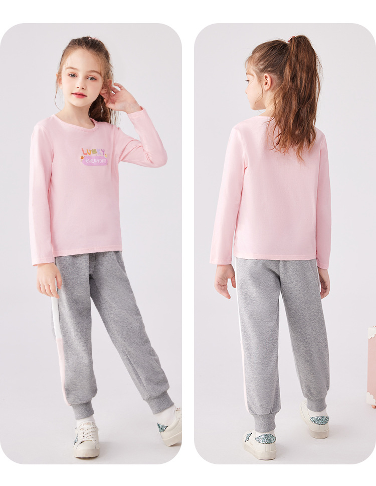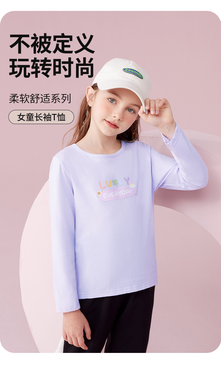 LAVI Spring New Girls Cotton 긴팔 티셔츠 어린이 캐주얼 크루 넥 레터 프린트 긴팔 티셔츠베이스 셔츠
