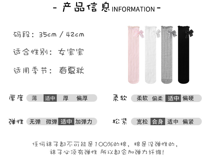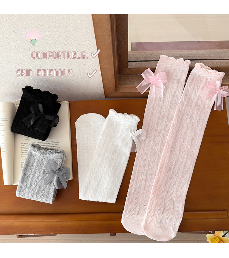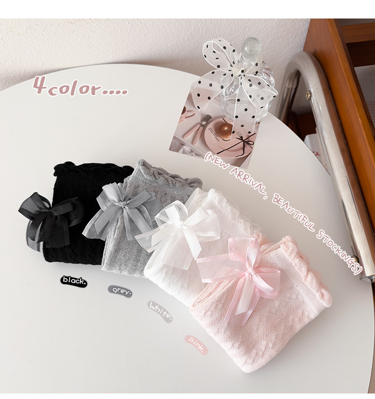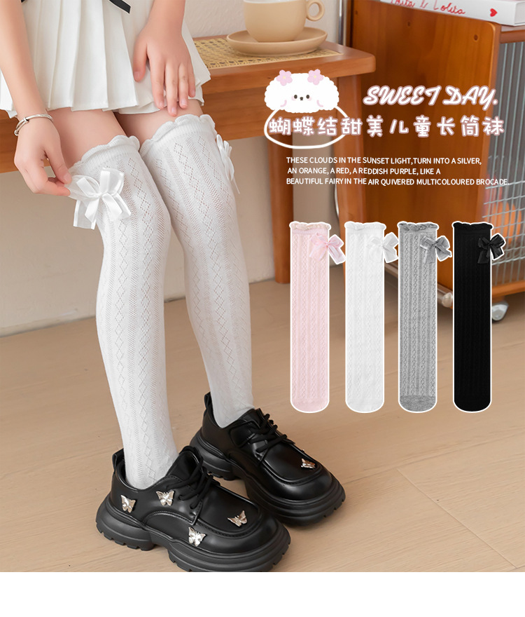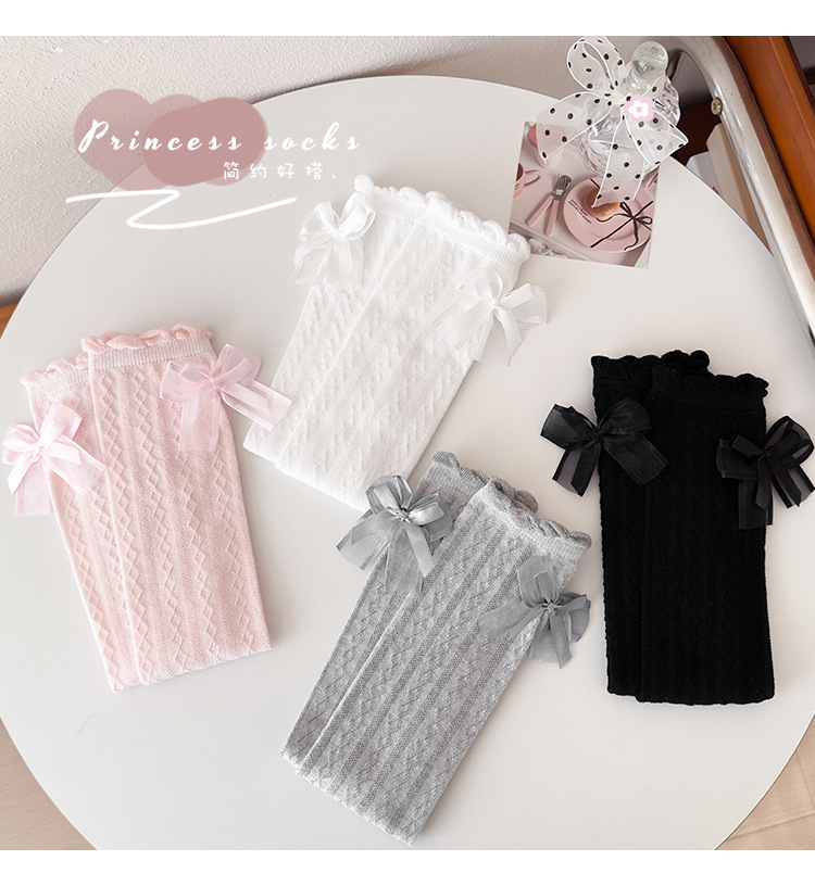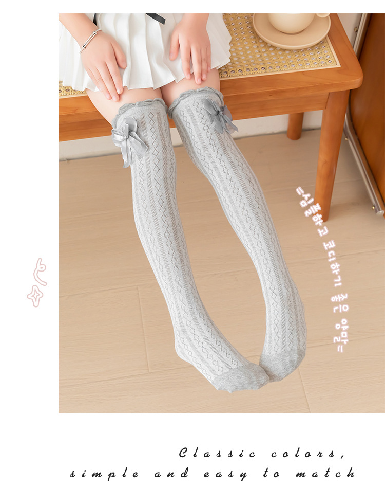 어린이 스타킹 봄과 가을 여성의 공주 스타일 Bowknot 커프 스타킹 소녀와 학생 안티 모기 중간 크기 어린이 스타킹스토어 가기