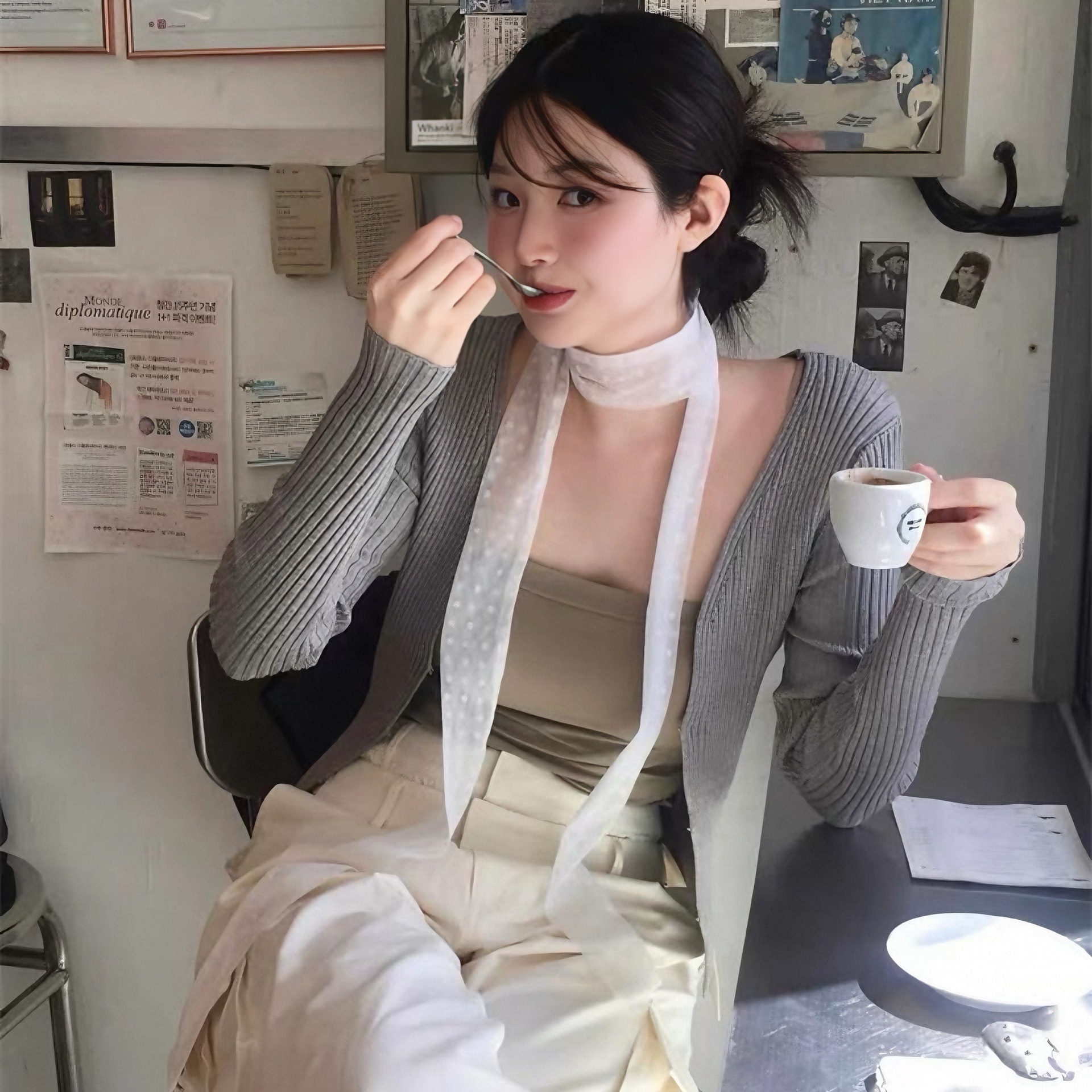 한국 Ins 폴라 도트 레이스 롱 실크 스카프 리본 여성용 봄과 여름 스파이스 소녀 겹치는 상형 올 매치 장식 목걸이스토어 가기