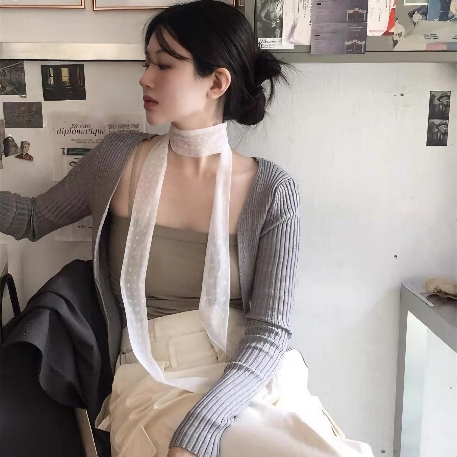 한국 Ins 폴라 도트 레이스 롱 실크 스카프 리본 여성용 봄과 여름 스파이스 소녀 겹치는 상형 올 매치 장식 목걸이