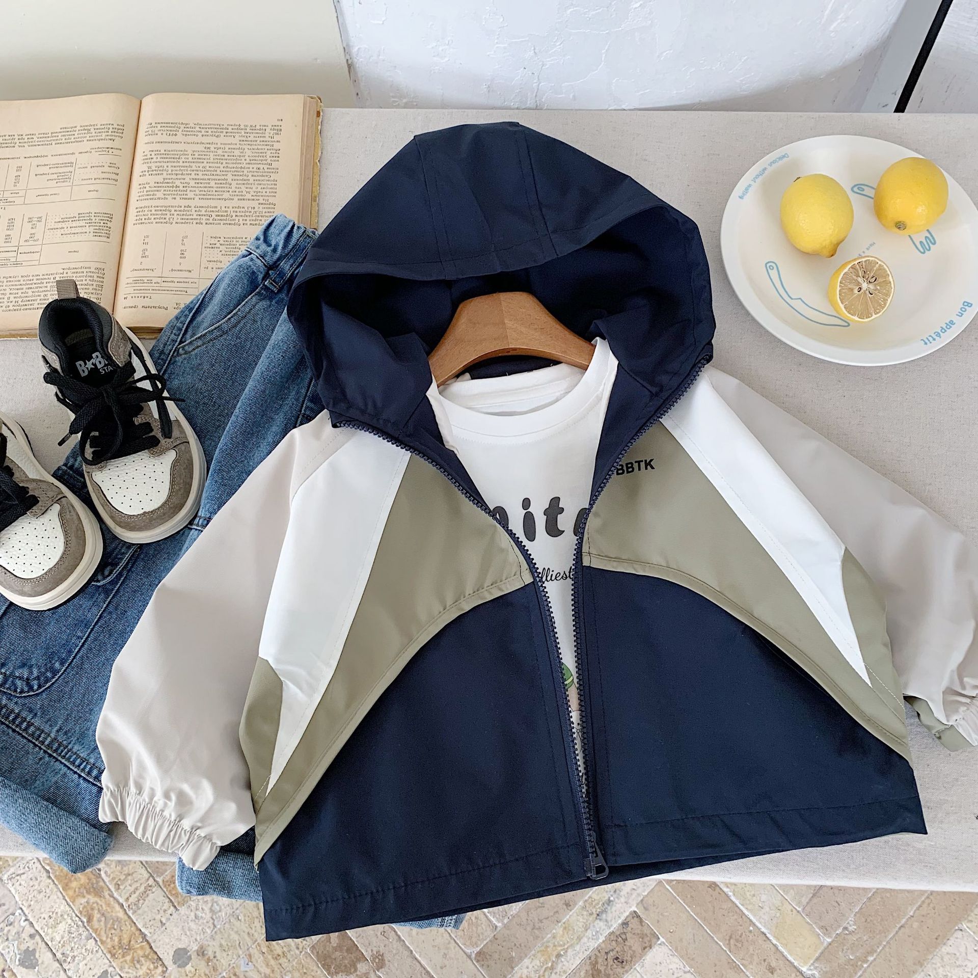 어린이 코트 Bangcheng 2026 봄 신상 남아용 배색 후드 지퍼 중소형 아동용 상의 H0132