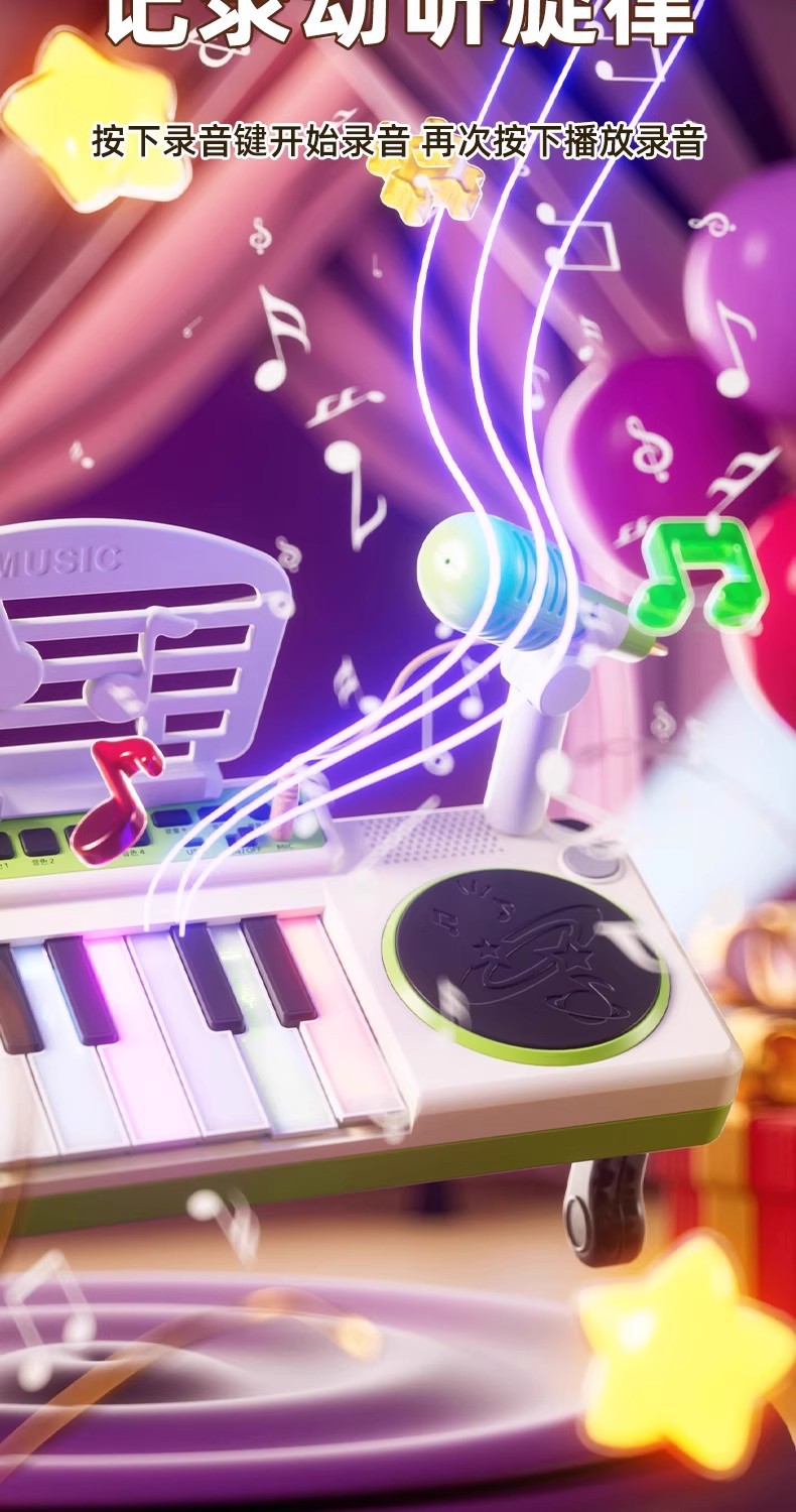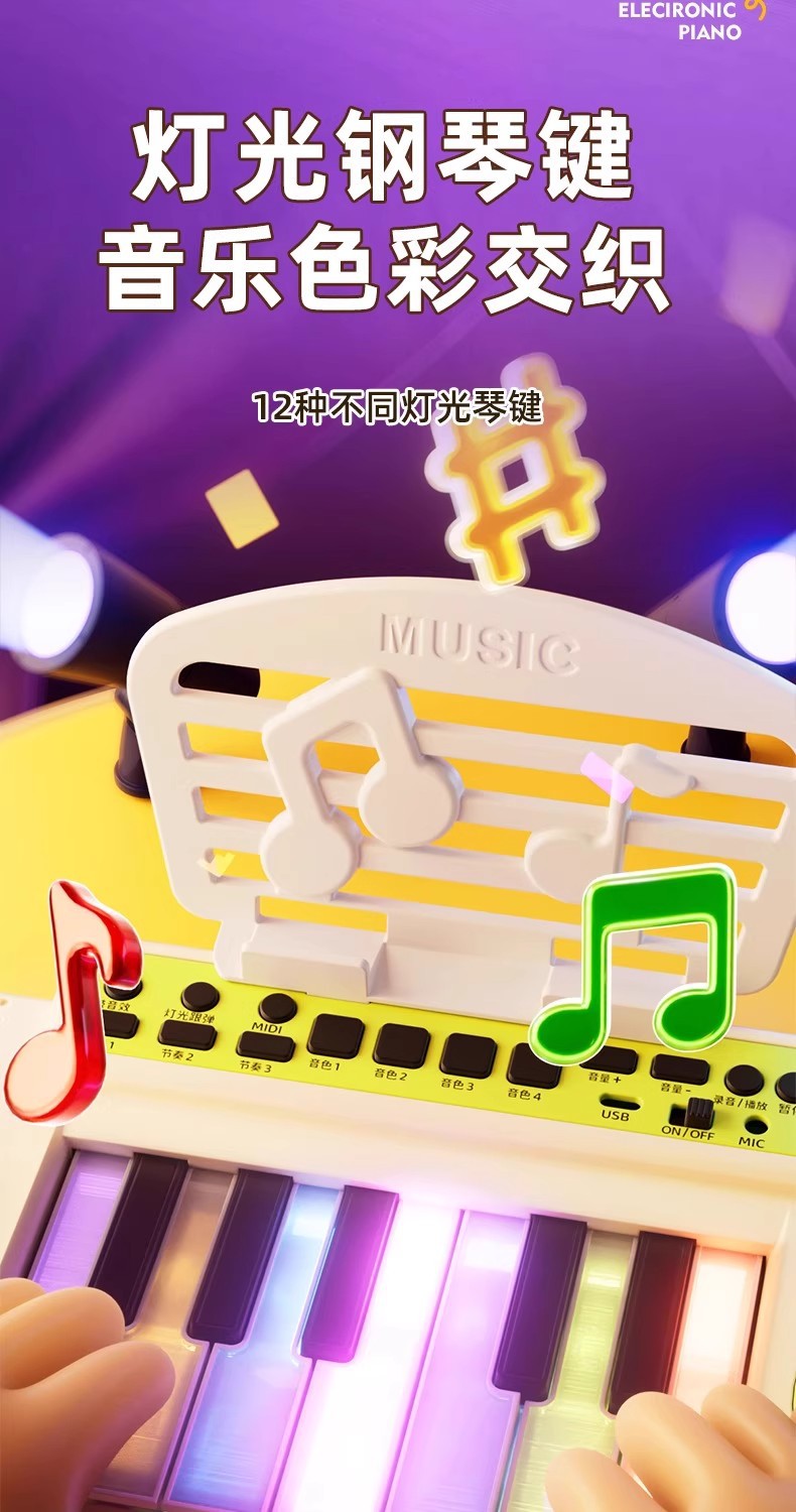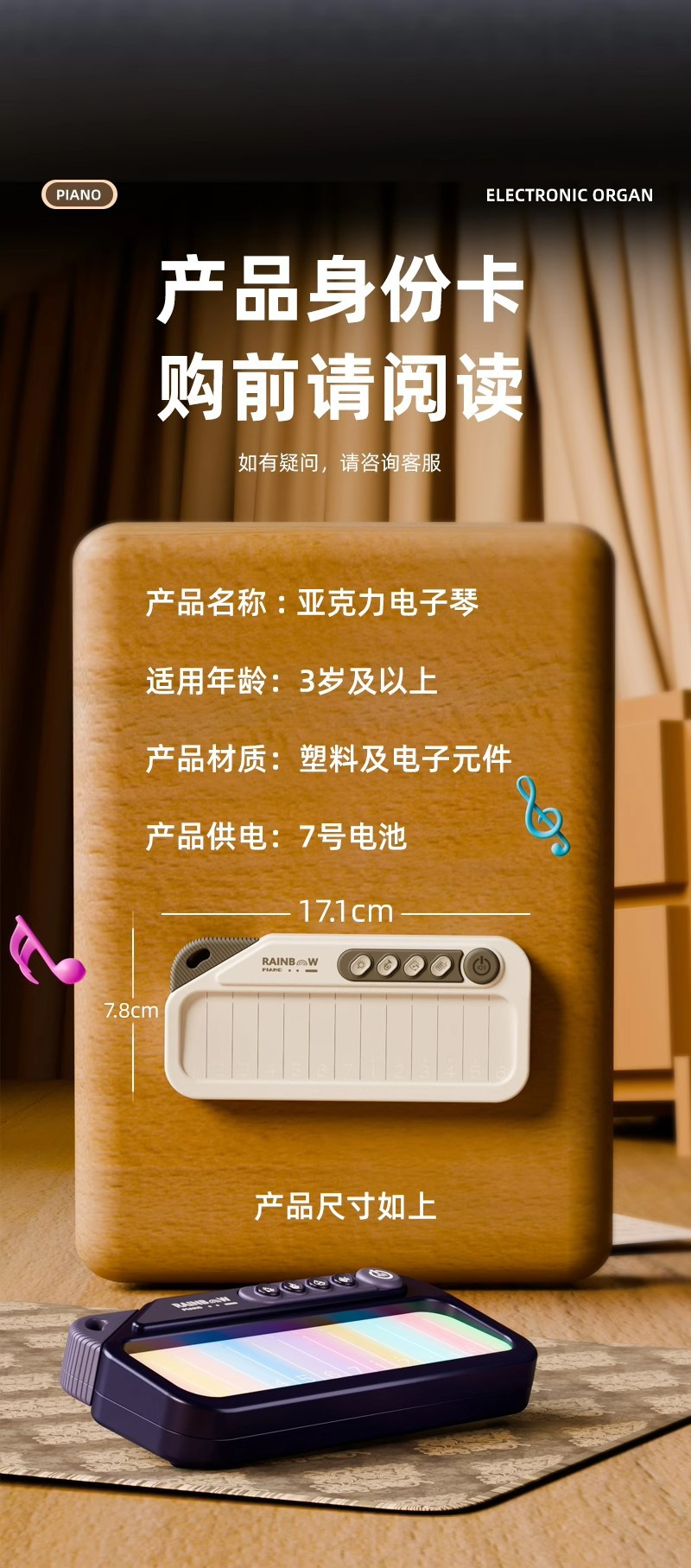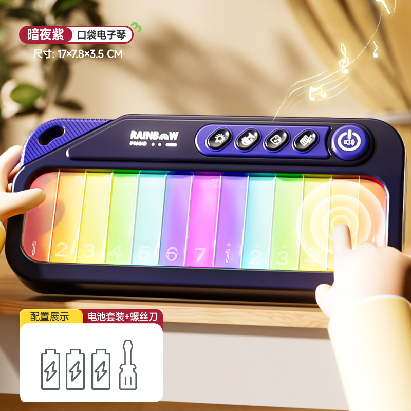 • 다크 나이트 퍼플 컬러 스크린 터치 "3종 악기 + 조기 교육 동요 + 배터리 버전" 선물 상자