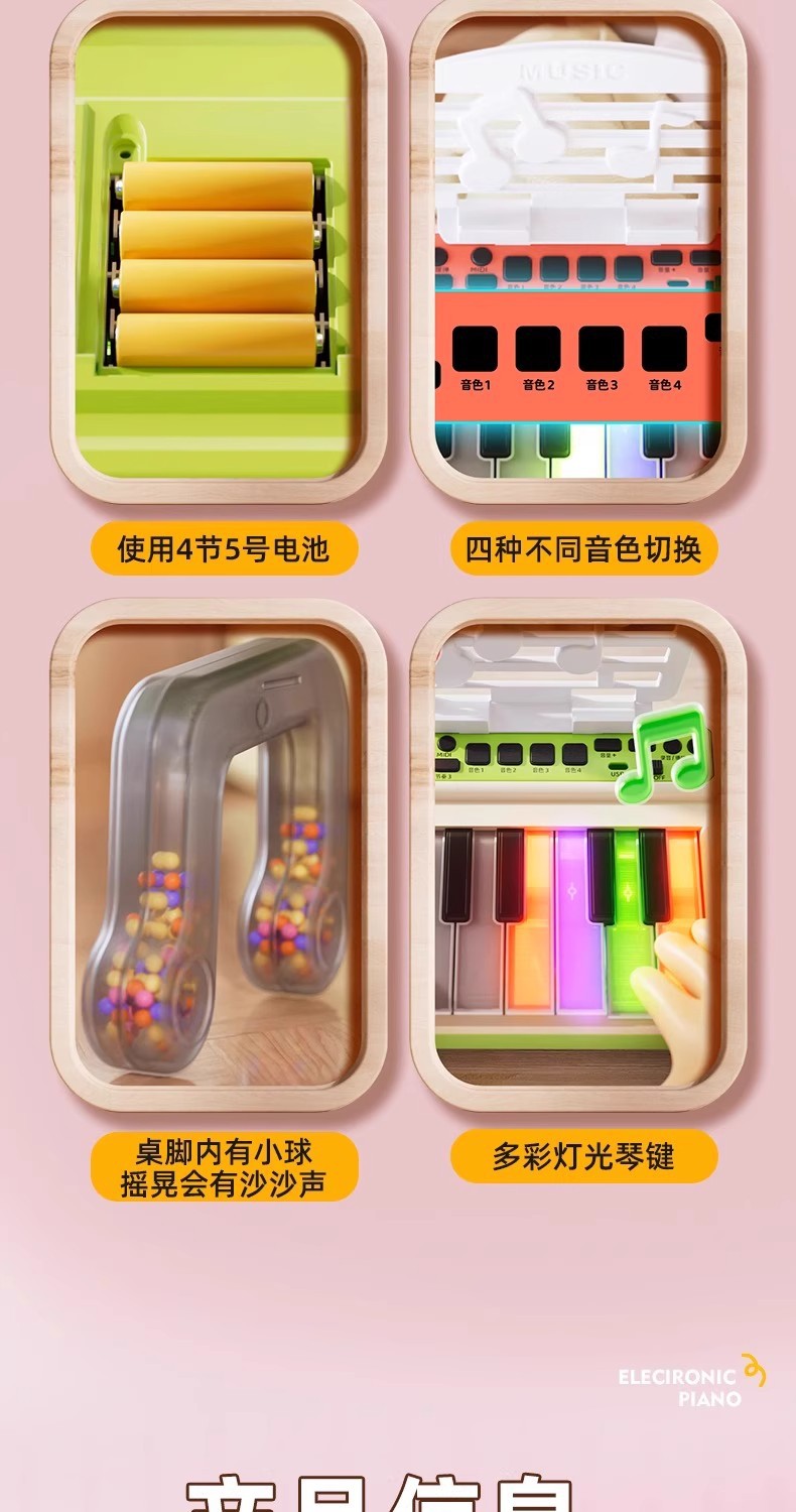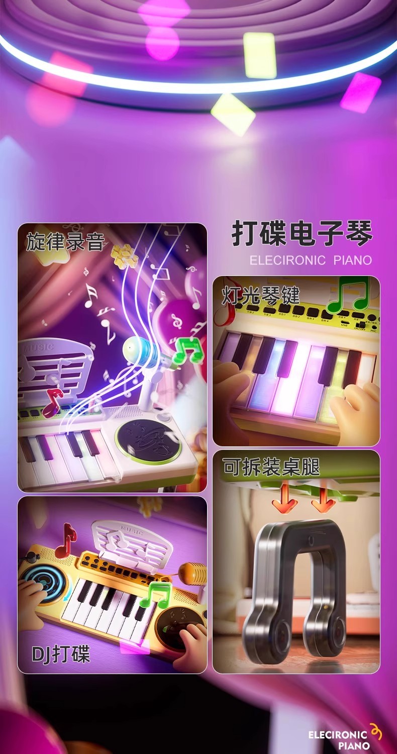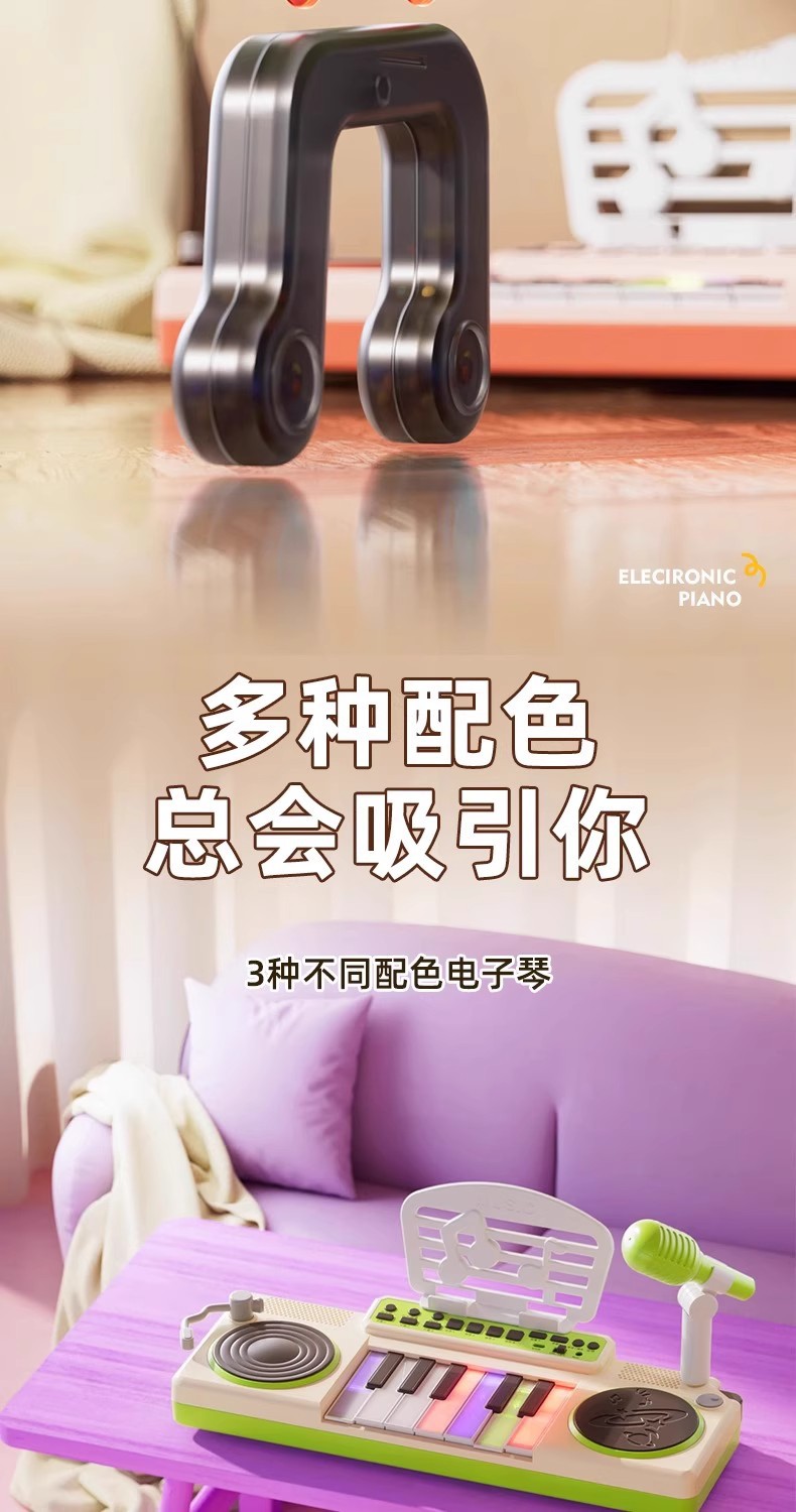 • 다크 나이트 퍼플 컬러 스크린 터치 "3종 악기 + 조기 교육 동요 + 배터리 버전" 선물 상자