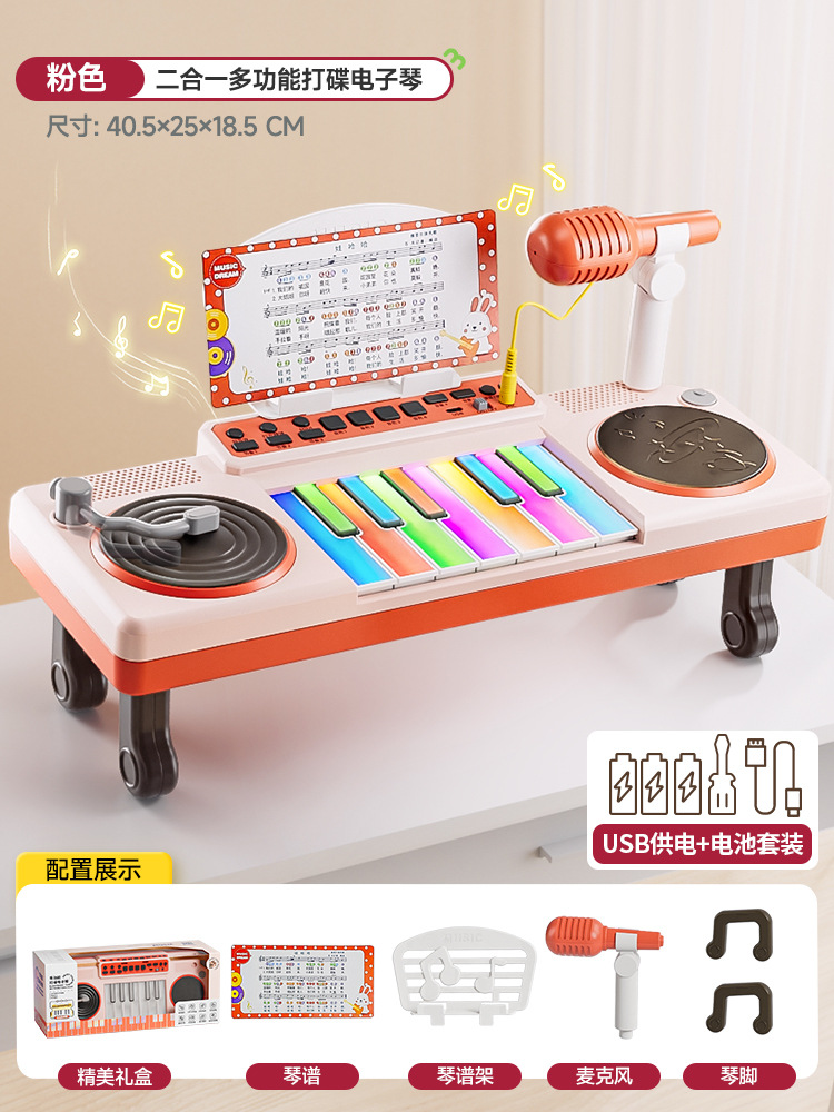 • 【2 in 1】 핑크 - DJ 턴테이블 전자 키보드 "마이크 + 악보대 + 악보 + 테이블 다리 + 선물 상자" 듀얼 전원 공급