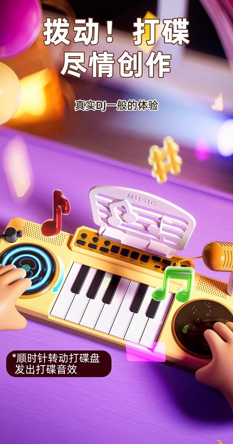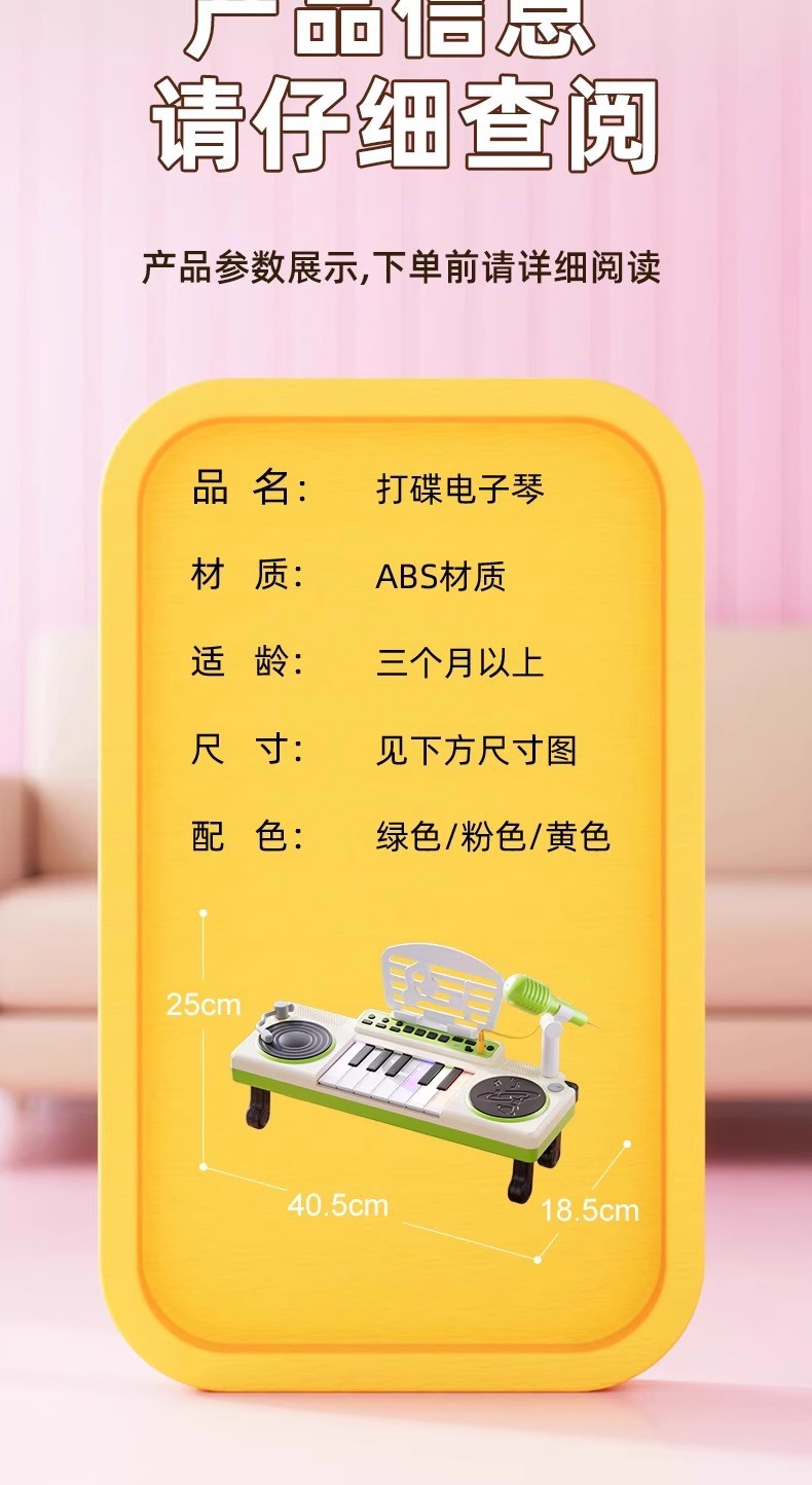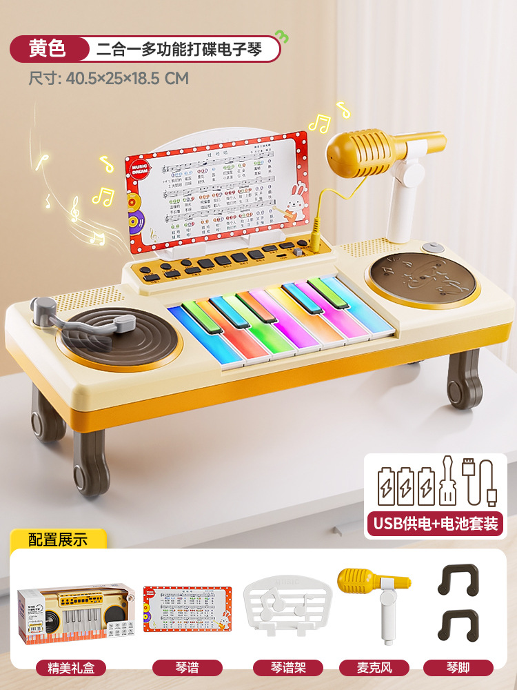 • 【2 in 1】 옐로우 DJ 턴테이블 전자 키보드 "마이크 + 악보대 + 악보 + 테이블 다리 + 선물 상자" 듀얼 전원 공급