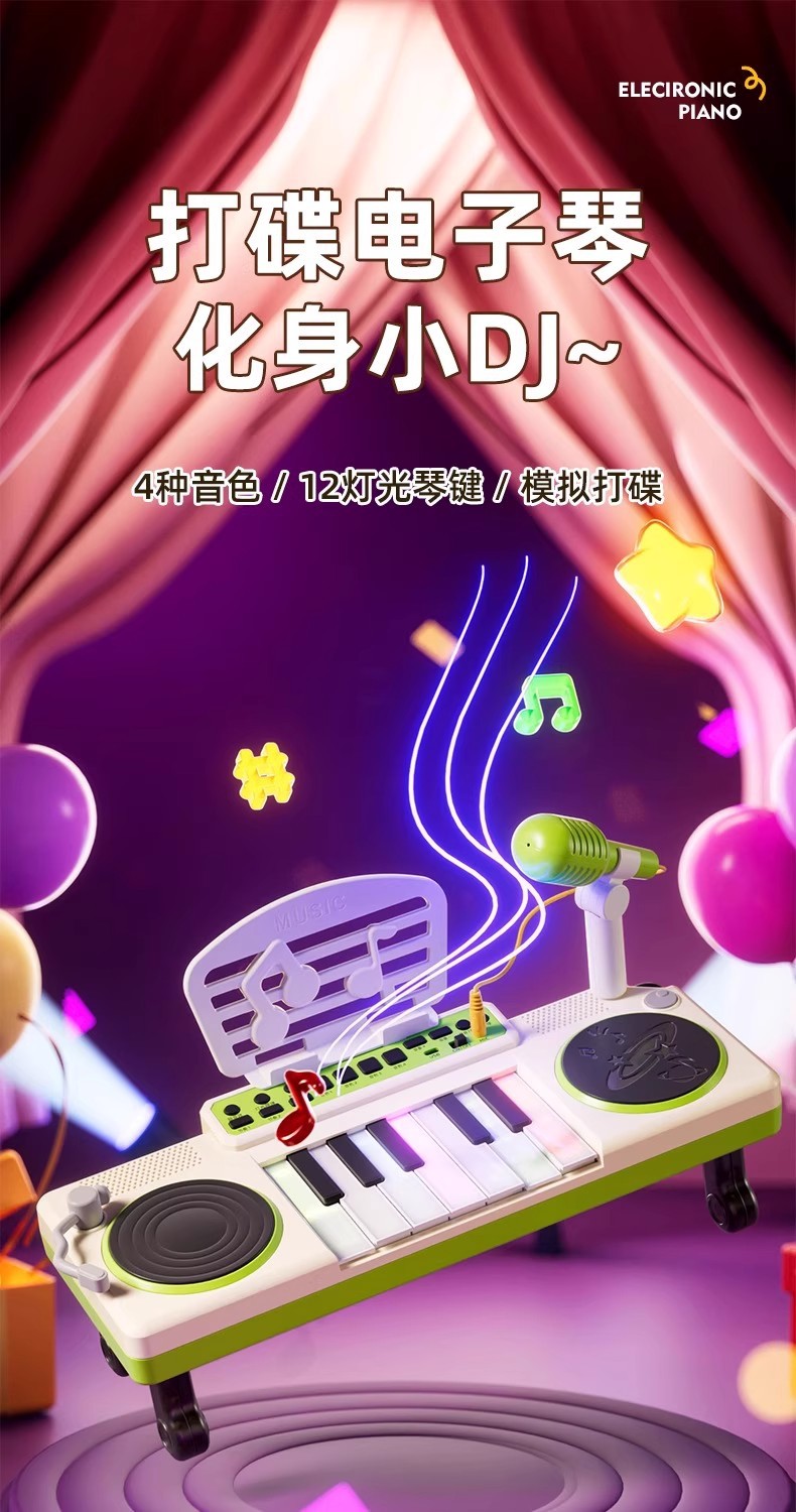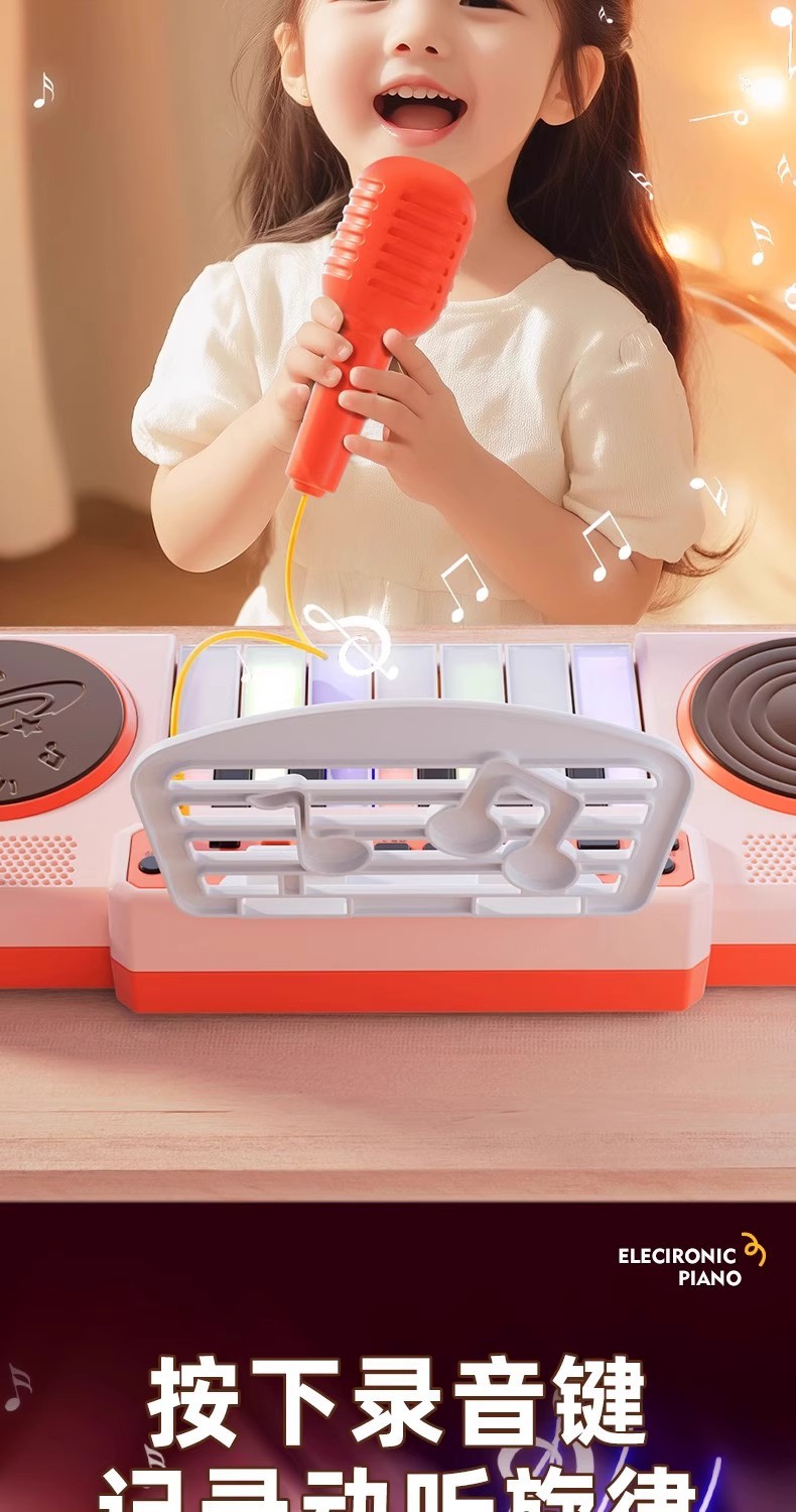조명 버튼과 마이크가 있는 크로스보더 DJ 디제이 전자 키보드 일체형 기계, 음악 장난감 피아노, 소녀 선물스토어 가기