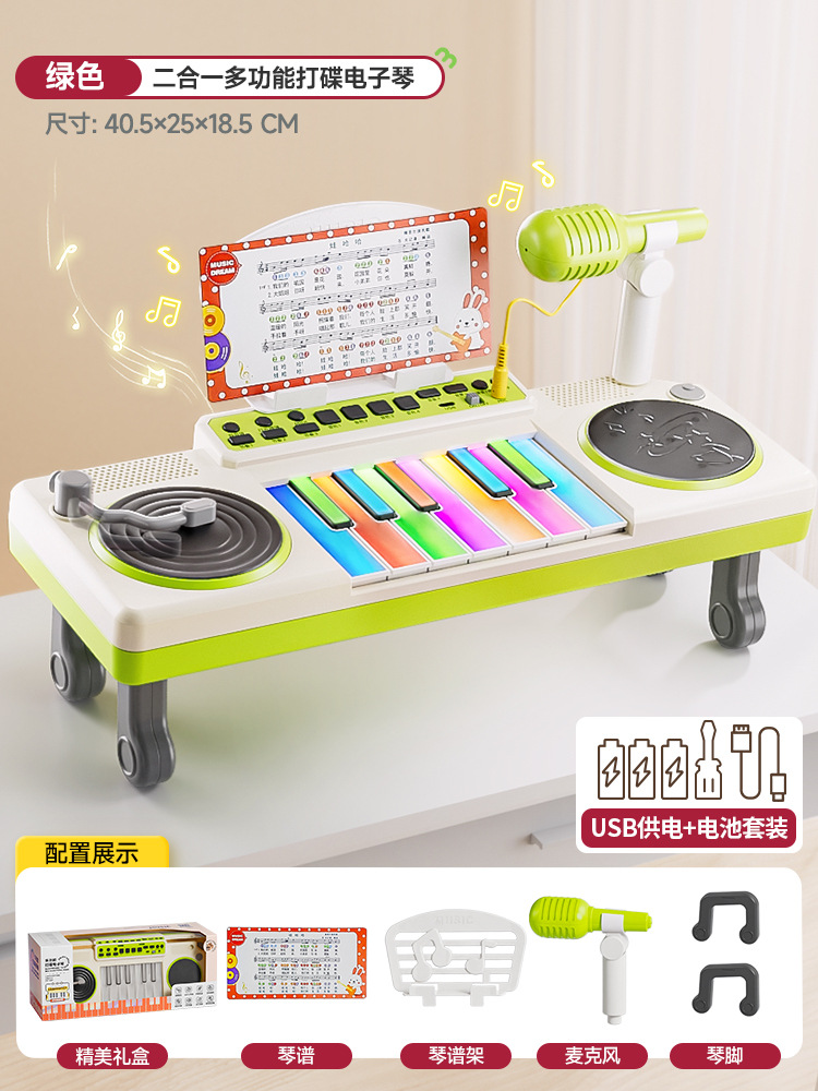 • 【2 in 1】그린 DJ 턴테이블 전자 키보드 "마이크 + 악보대 + 악보 + 테이블 다리 + 선물 상자" 듀얼 전원 공급