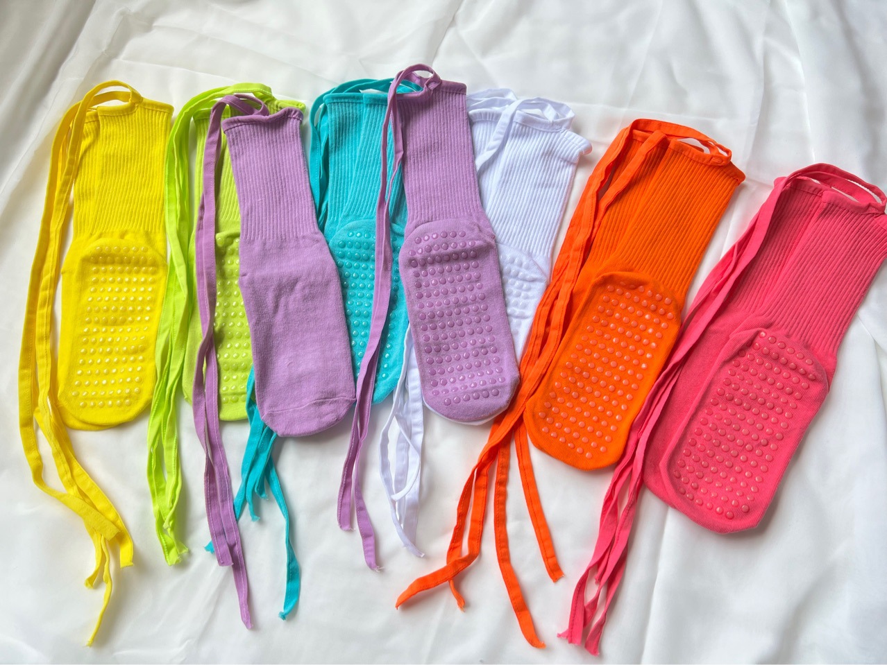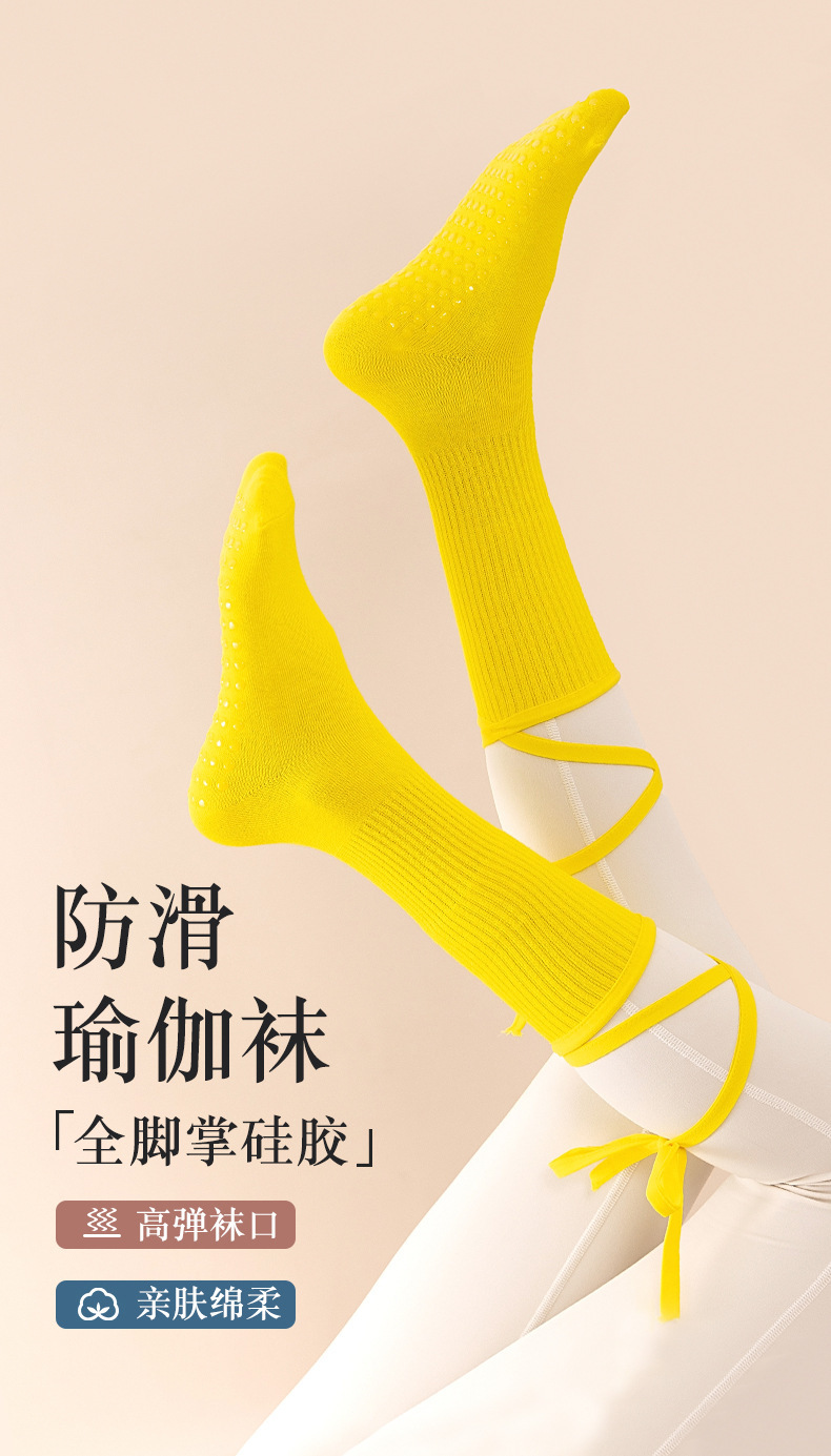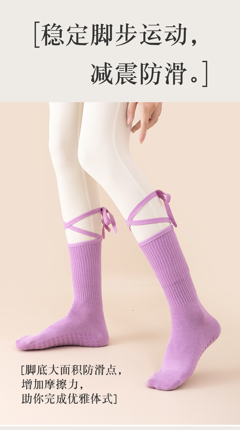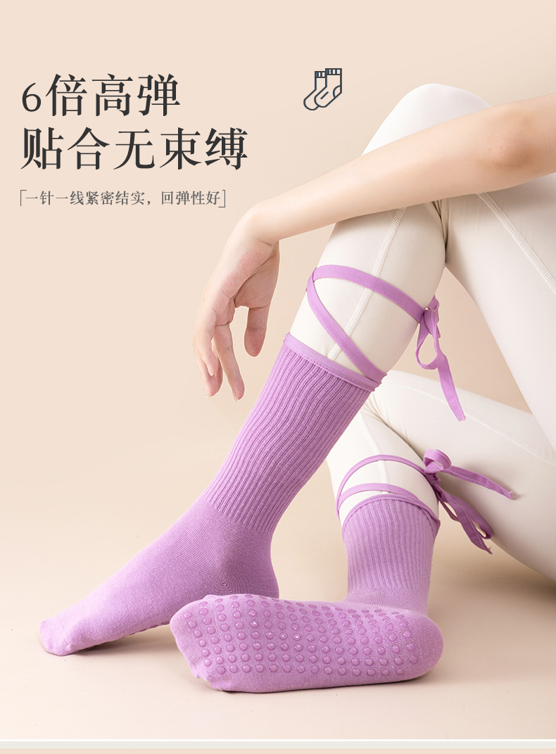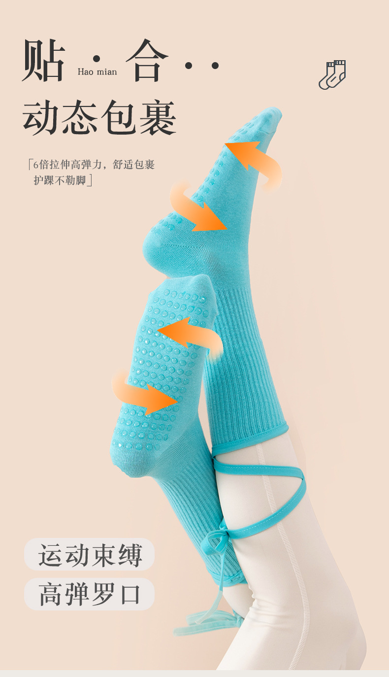 발 미끄럼 방지 크로스 스트랩 여성 요가 필라테스 댄스 도파민 스포츠 착용 중간 송아지 양말스토어 가기
