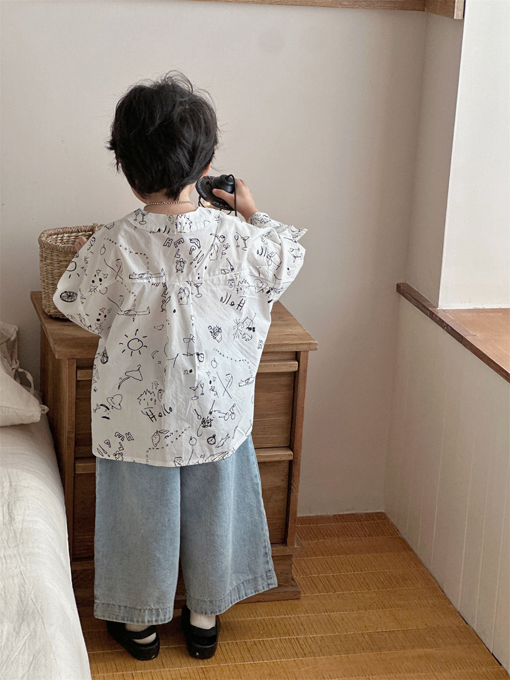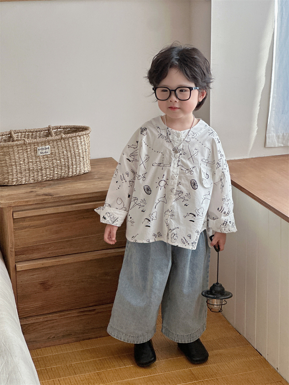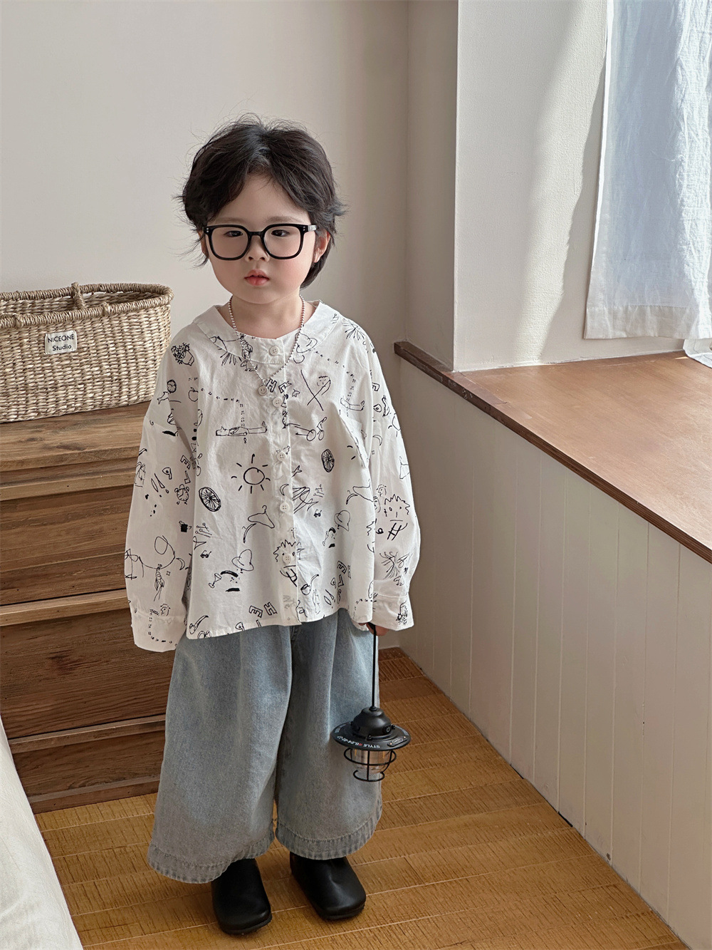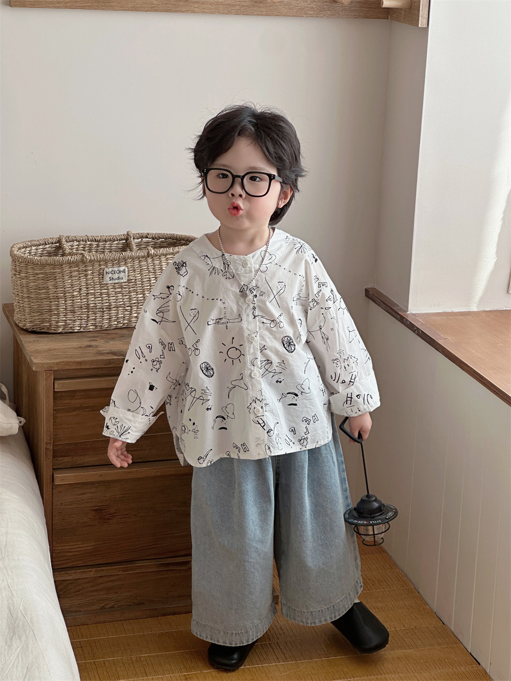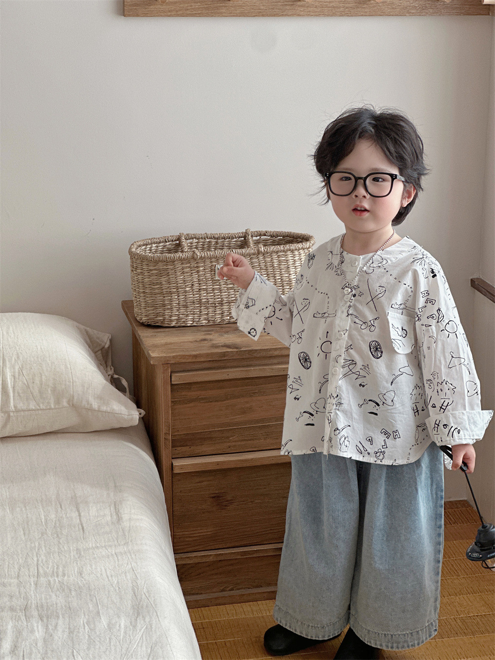 Montaigne Boys의 한국식 낙서 셔츠 2025 새로운 스타일 중소 어린이 캐주얼 탑 스트리트 프라이드 아기의 크루 넥 카디건 트렌디스토어 가기