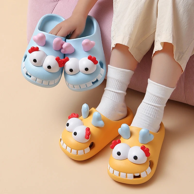 귀여운 재미있는 부모-자식 샌들과 슬리퍼 여성용 두꺼운 동굴 신발 여성용 여름 카토 드래곤 슬리퍼
