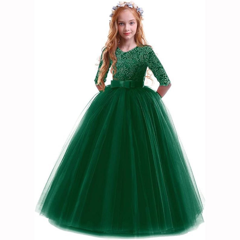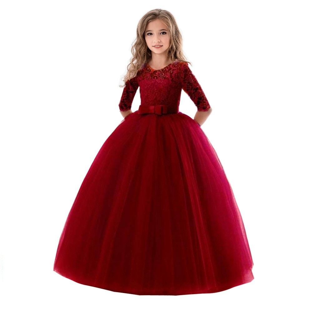 여아 리본 퍼프 스커트 플라워 걸 웨딩드레스 아동 드레스 공주 7부 소매 원피스스토어 가기