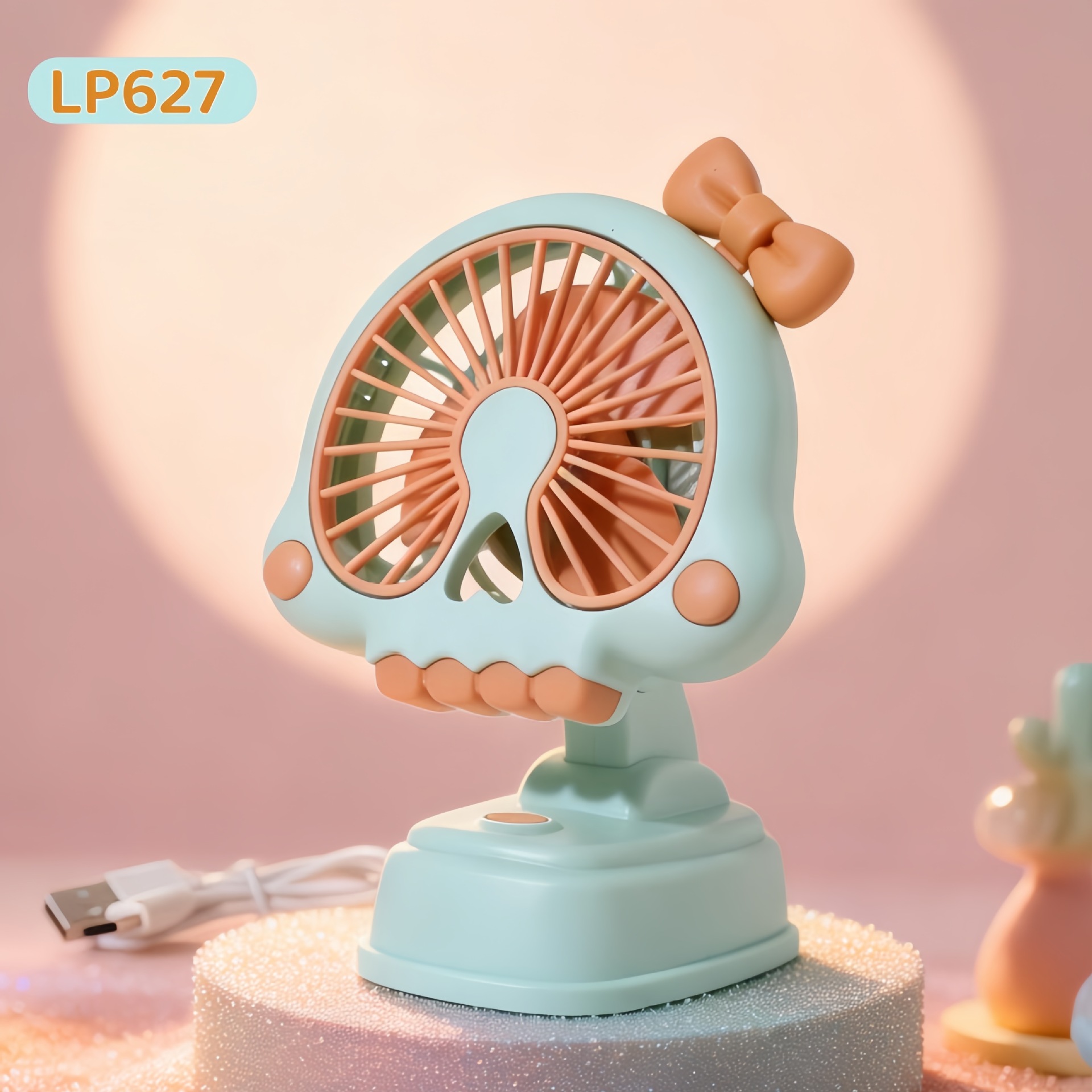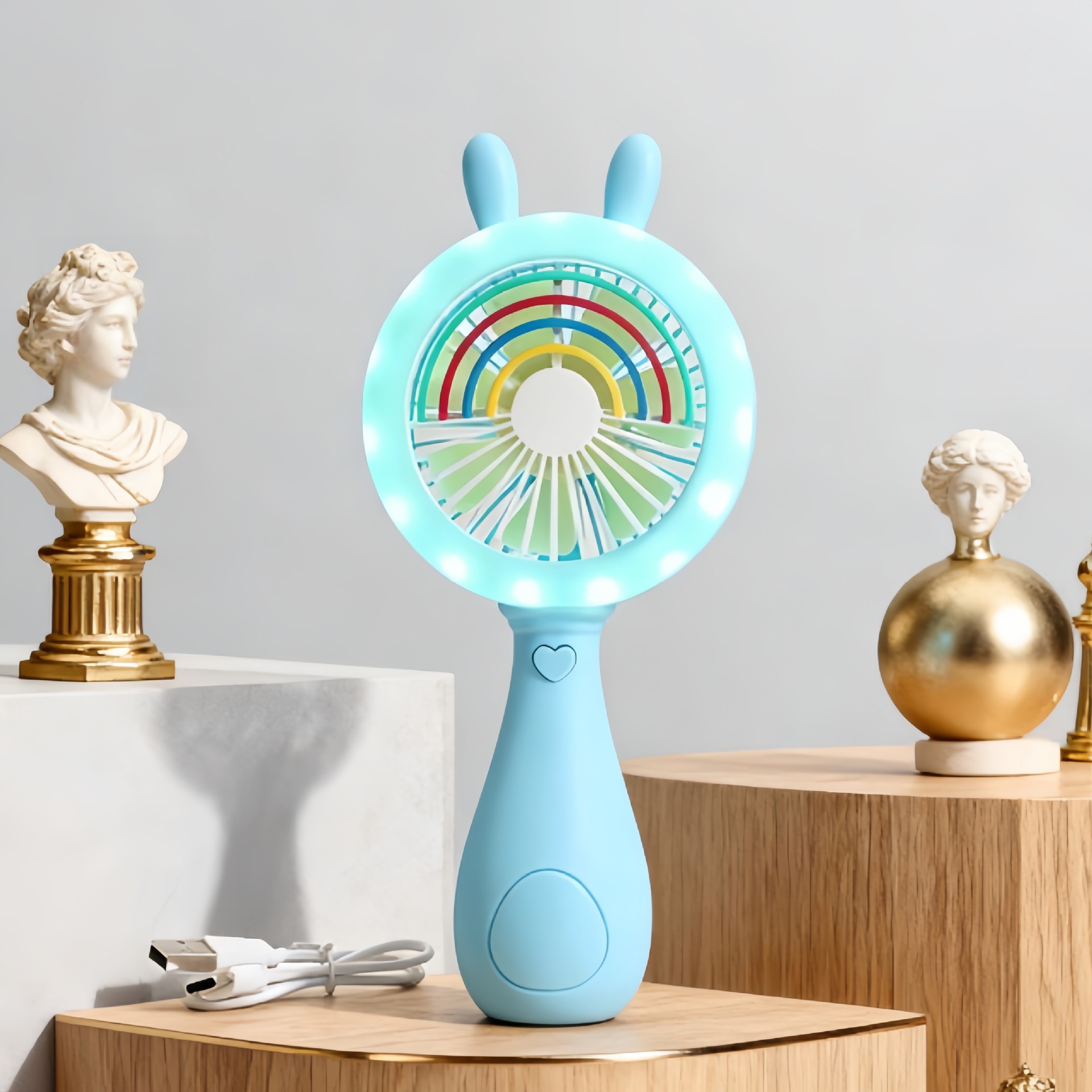 만화 토끼 데스크탑 작은 팬 usb 충전 휴대용 전기 팬을 위아래로 조정 바람 방향 선풍기 제조 업체 도매스토어 가기