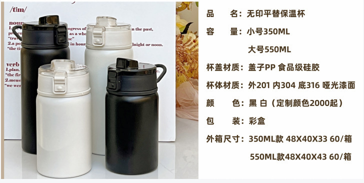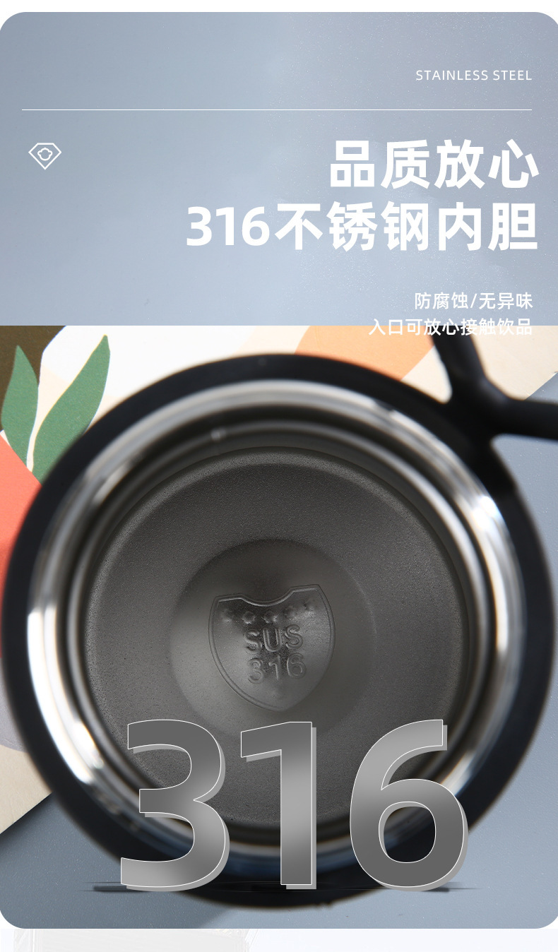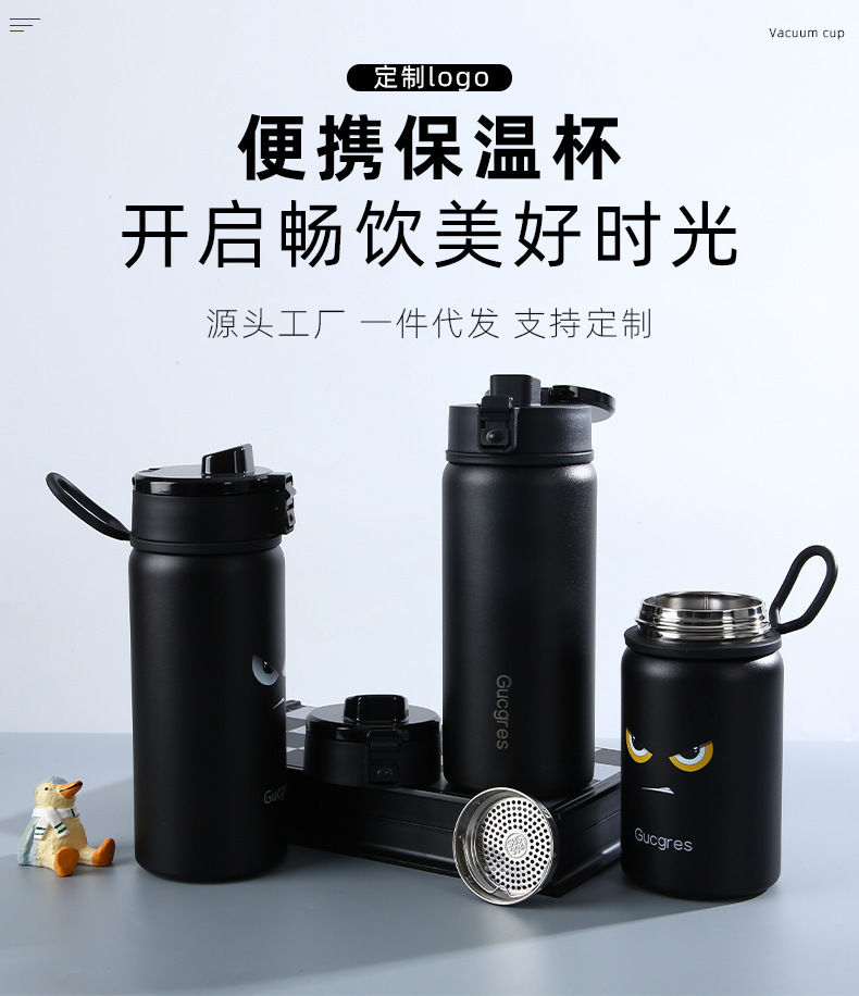 새로운 무인쇄 물컵, 심플한 316 스테인리스 보온병, 차 분리기가 있는 고급스러운 휴대용 컵, 로고 인쇄