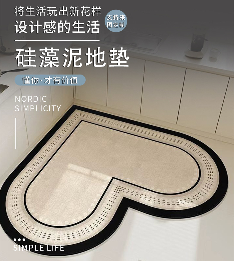 Temu 국경 주방 바닥 매트 사랑 모양의 흡수성 및 오일 흡수성 규조류 진흙 바닥 매트 먼지 방지 및 잘 관리 미끄럼 방지 발 매트