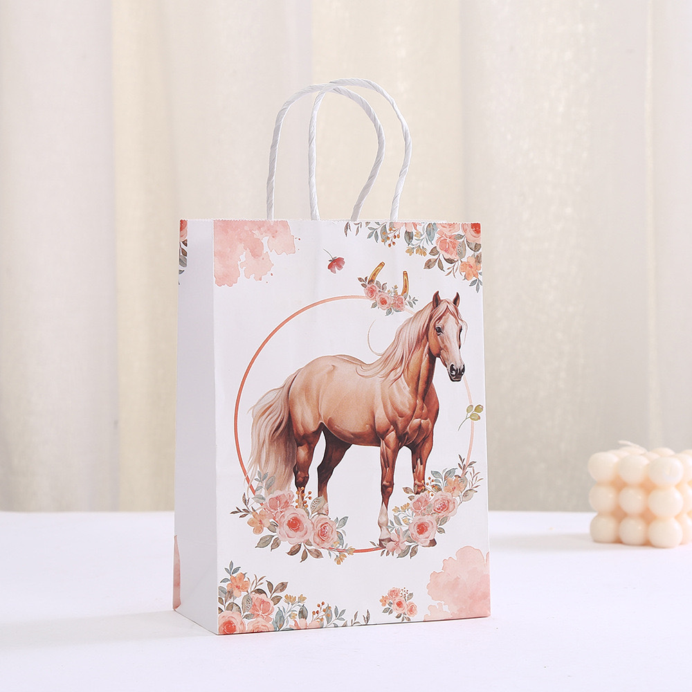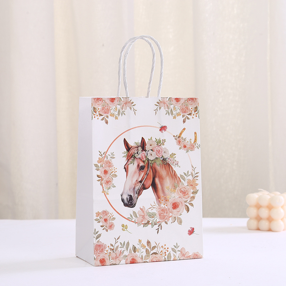 크로스 국경 인쇄 경마 파티 크래프트 종이 쇼핑백 생일 선물 가방 간단한 종이 가방 휴일 포장 가방 도매